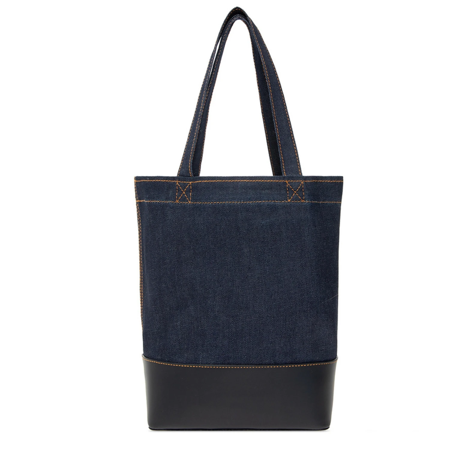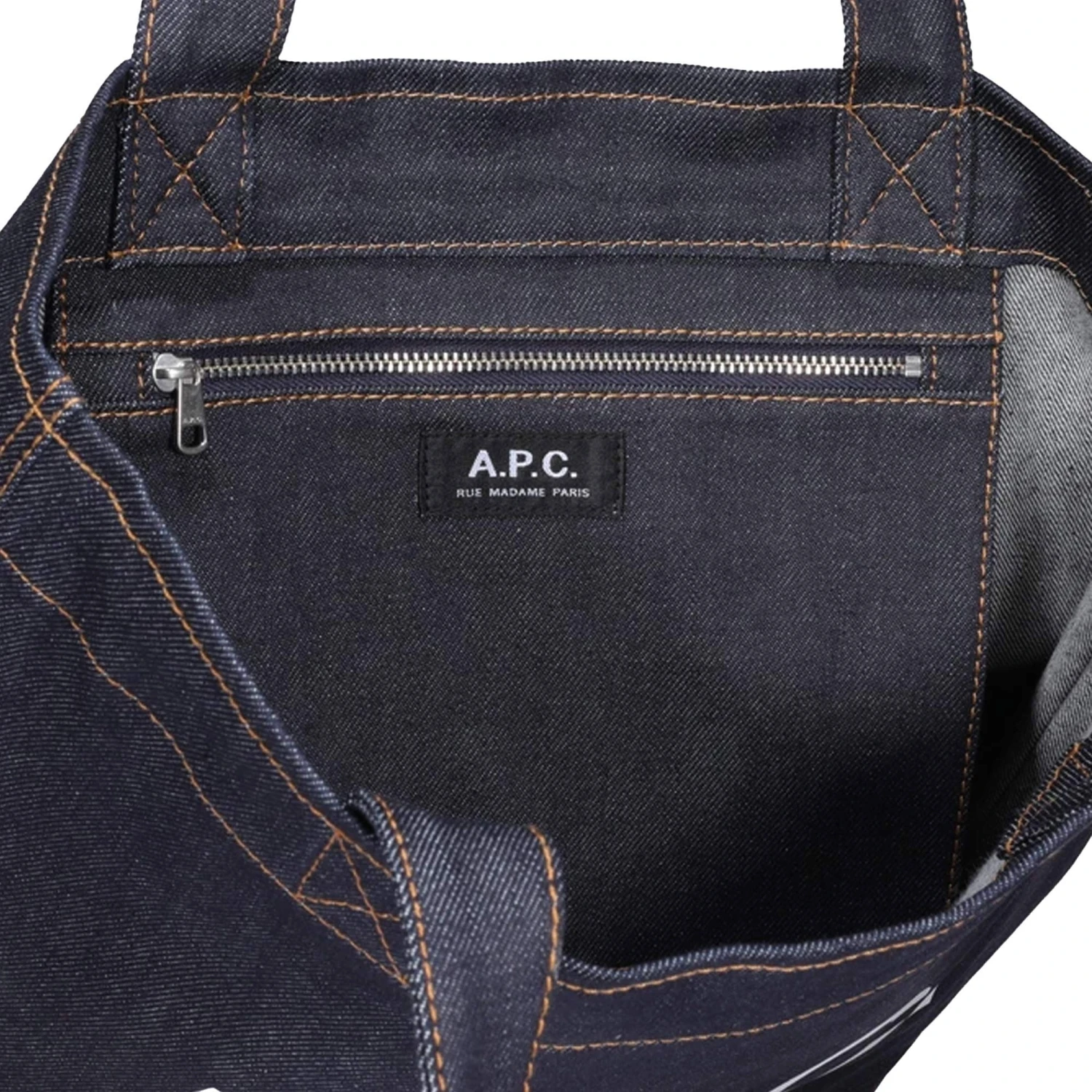 Brandishing the striking A.P.C motif, this tote is a stylish statement bag with a huge variety of uses. Crafted from a hard-wearing indigo cotton with a leather protective base which will garner a lovely patina with time and use. This tote bag has a large single opening with a handy internal pocket. The strap is the perfect length and can be worn over the shoulder or held in the hand and is complete with a top stitch for a sleek look.