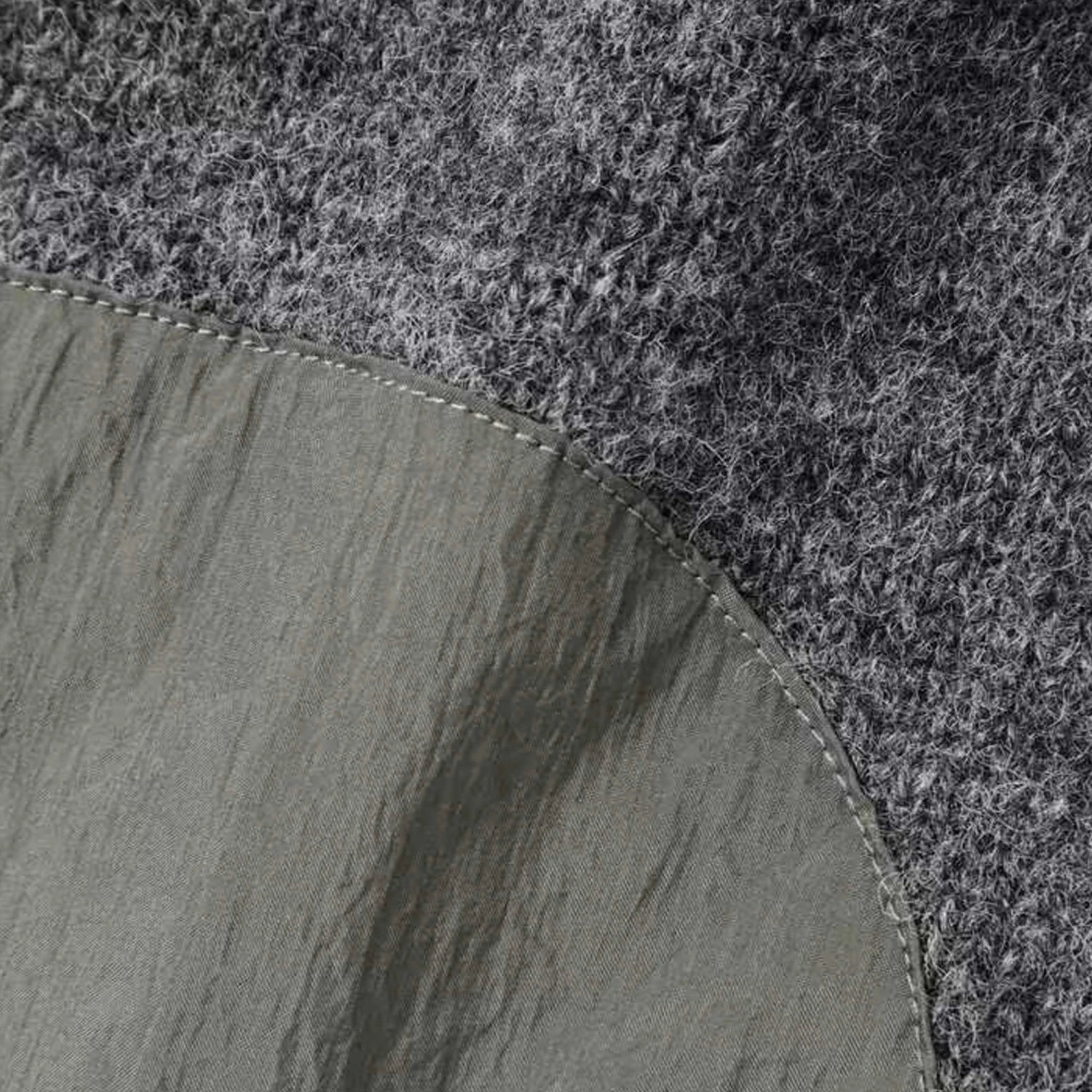 A wool knit from the Shetland Islands, north of Scotland. British sheep are raised in cold and harsh winter environments, so their wool is elastic and durable. Shetland wool is grown in a breeding environment where seaweed is eaten as a supplementary food, so its softness and luster among British wool characterise it. Knitted with 5 gauges to create a rough atmosphere.