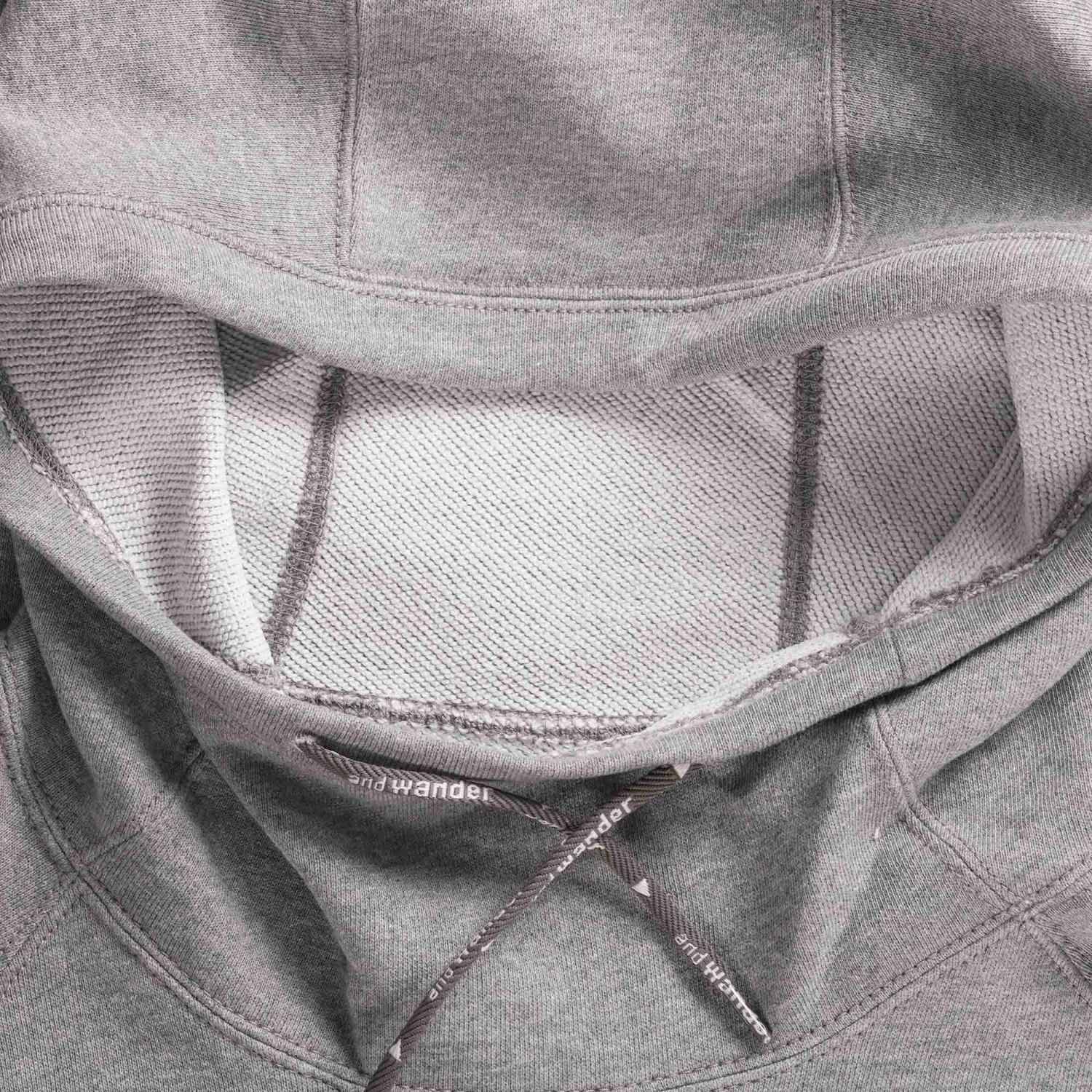 Maison Kitsuné x And Wander cotton fleece hoodies. Featuring a classic cut with Fox and triangle patches embroidered at the breast and printed Maison Kitsuné x And Wander illustration at the back.