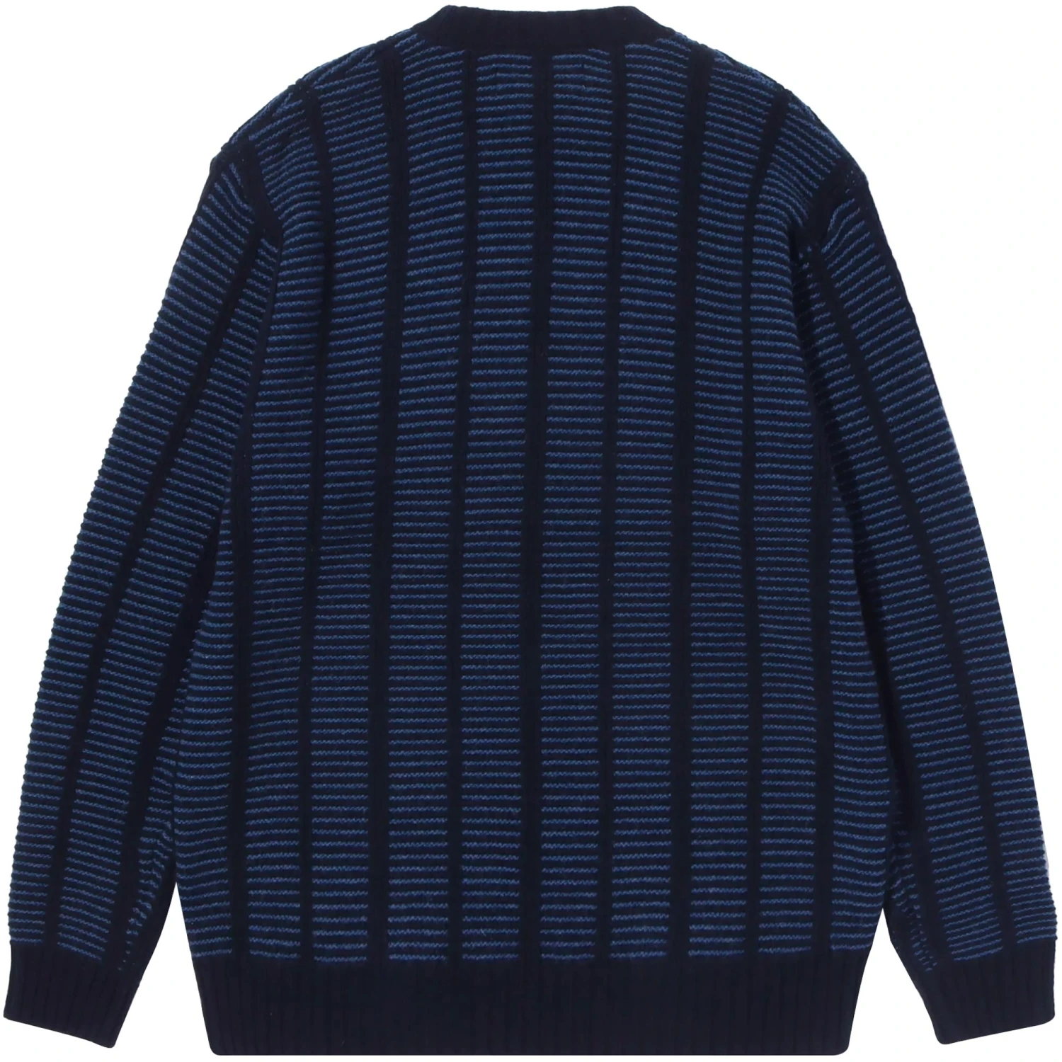 Anonymous Knit a medium-count soft lambswool yarn suitable for intermediate and higher gauge machines on a 5-gauge machine. The solid fabric is nonetheless light and comfortable. The crewneck, cuffs, and hem of this knit sweater are ribbed. Finish the look with a pair of Edwin Jeans and Jeffrey West boots.