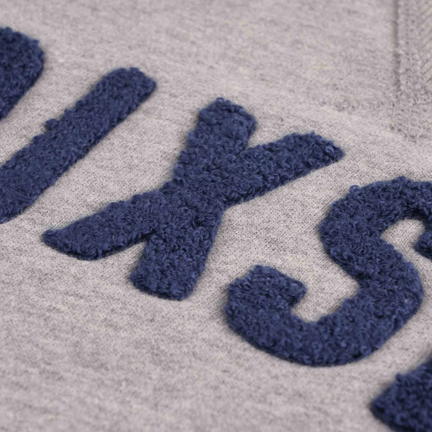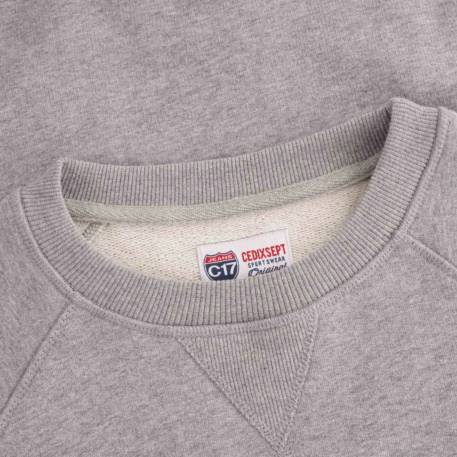 Made from a traditional style loopback weave, for a soft and comfortable fit. Raglan sleeves and triangle detail at the neck complement the chunky rib neck, hem and cuffs. Across the chest, chenille in a true varsity style adorns the Cedixsept name. Finished with the C17 Jeans logo embroidered on the left arm.