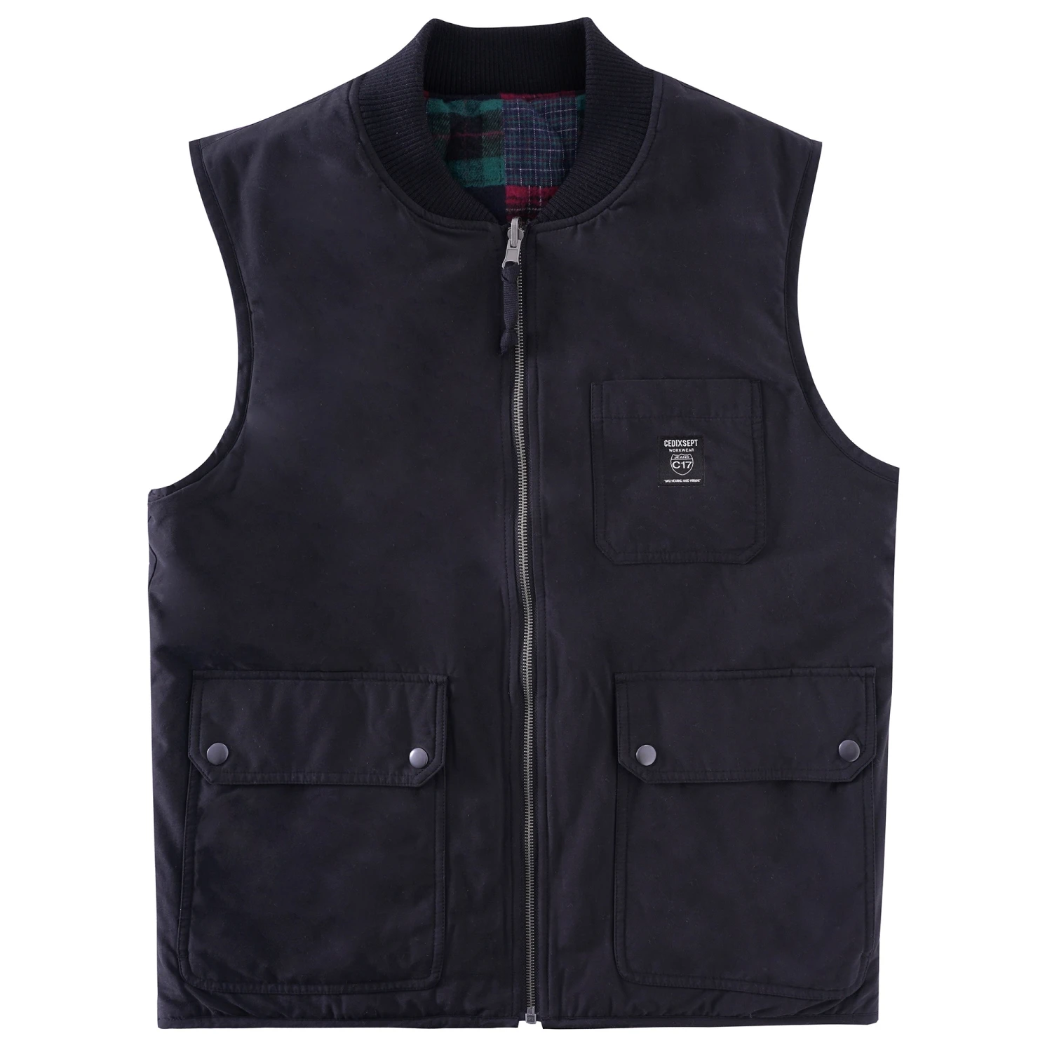 This Patch/Black Reversible Vest from C17 Jeans is an ideal & versitile layering option this Autumn/Winter. Finished in a brushed cotton shell on one side, the reverse side boasts a 70% nylon black finish, making this a very adaptable piece. Both sides features two lower press stud pockets and a left chest pocket boasting the CedixSept logo embroidery. Finished with a hard wearing YCC full zip closure and a 100% cotton rib at the neck, keeping the chill off during those early starts.