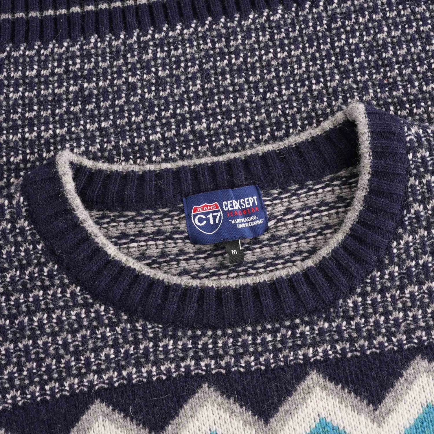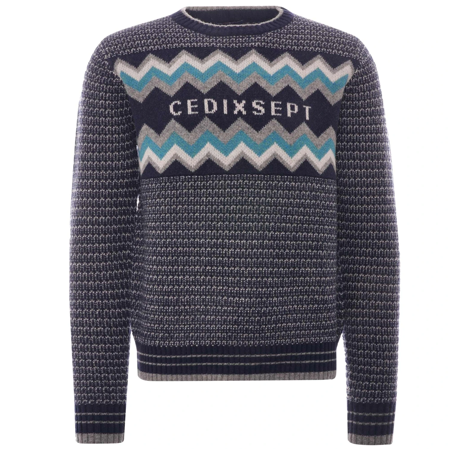 C17 – Cedixsept Jeans Script Peaks Knitted Sweatshirt – Navy Blue