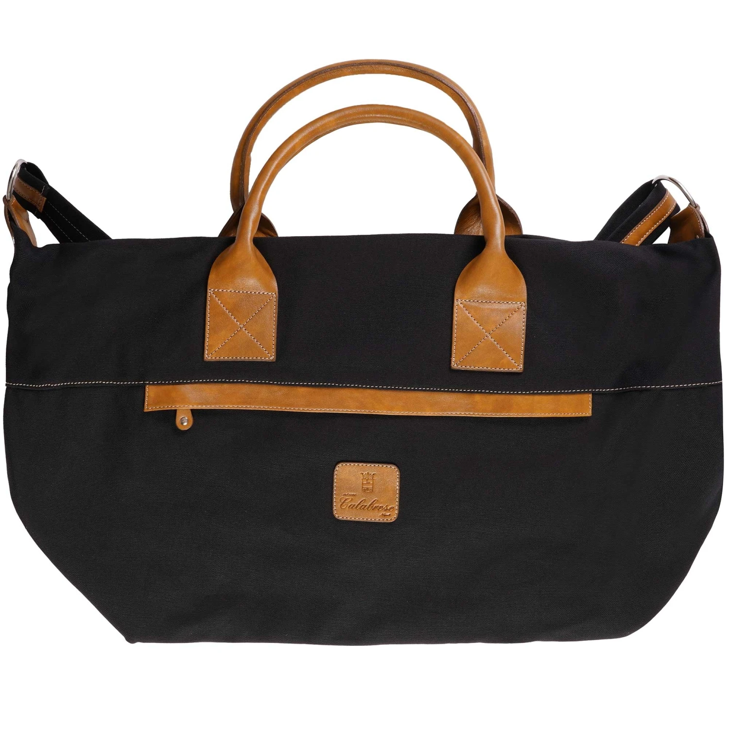 Calabrese 1924 have produced this leather and canvas bag, which adds the Calabrese Italian flair, superior leather finishing, and a set of vividly coloured canvases to complete your accessory collection. The tote bag has metal hardware, leather handles, and two internal zippered compartments for valuables and two outer zipper compartments and is complete a leather Calabrese branded patch.
