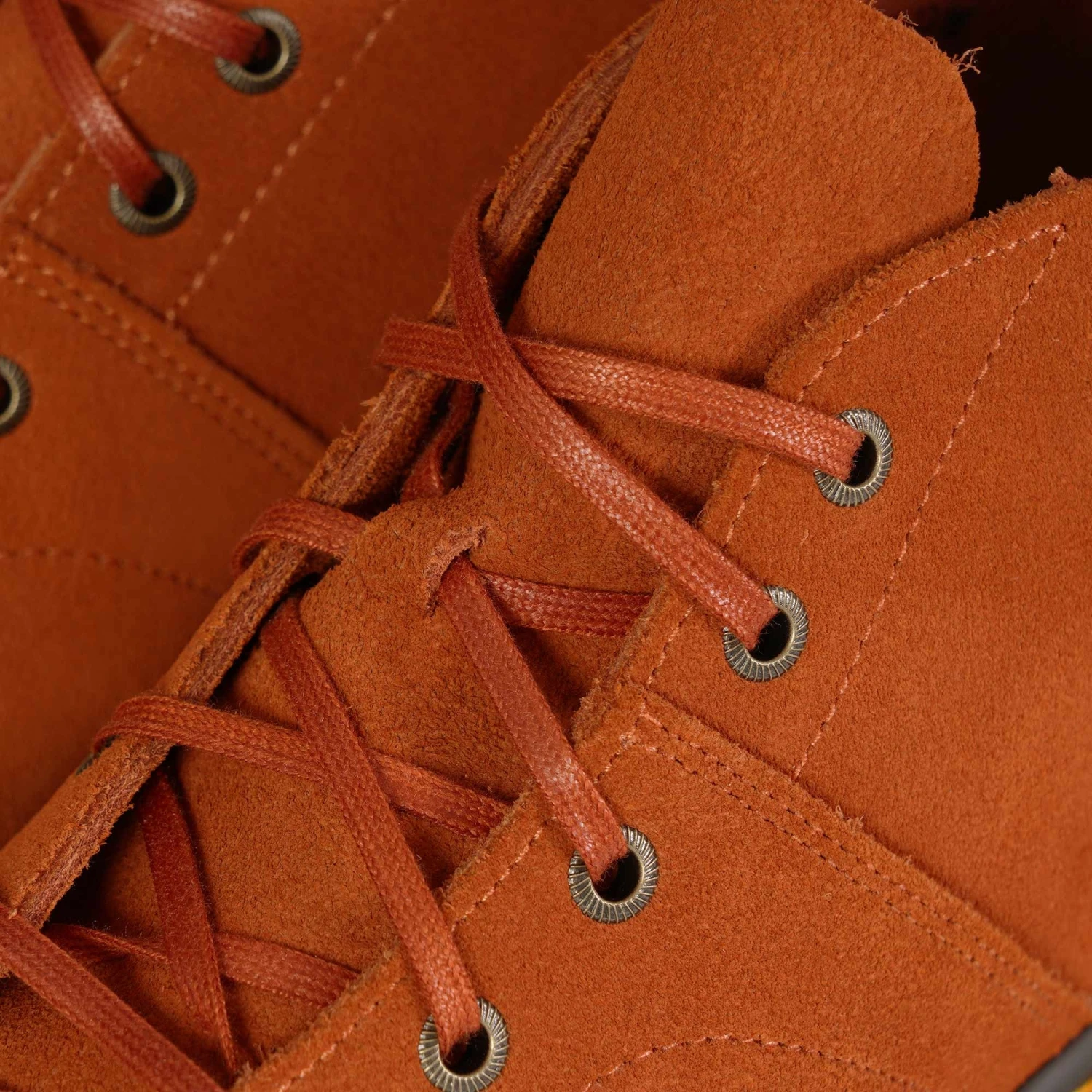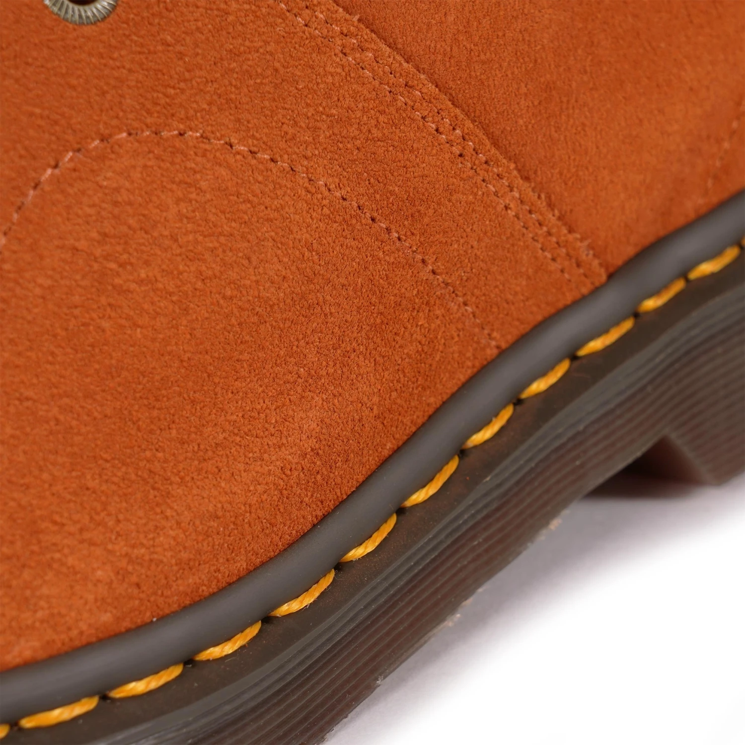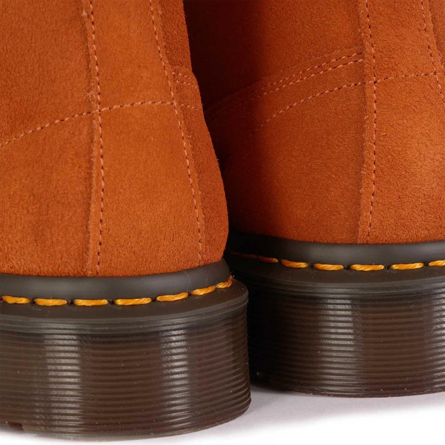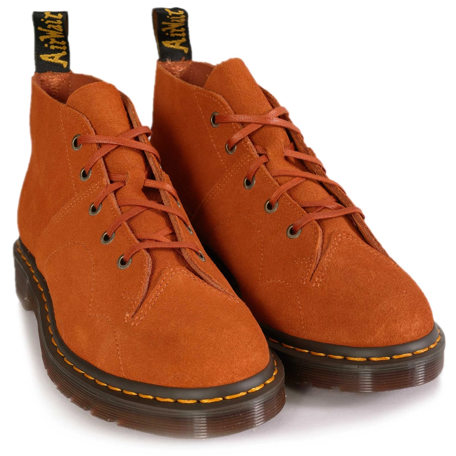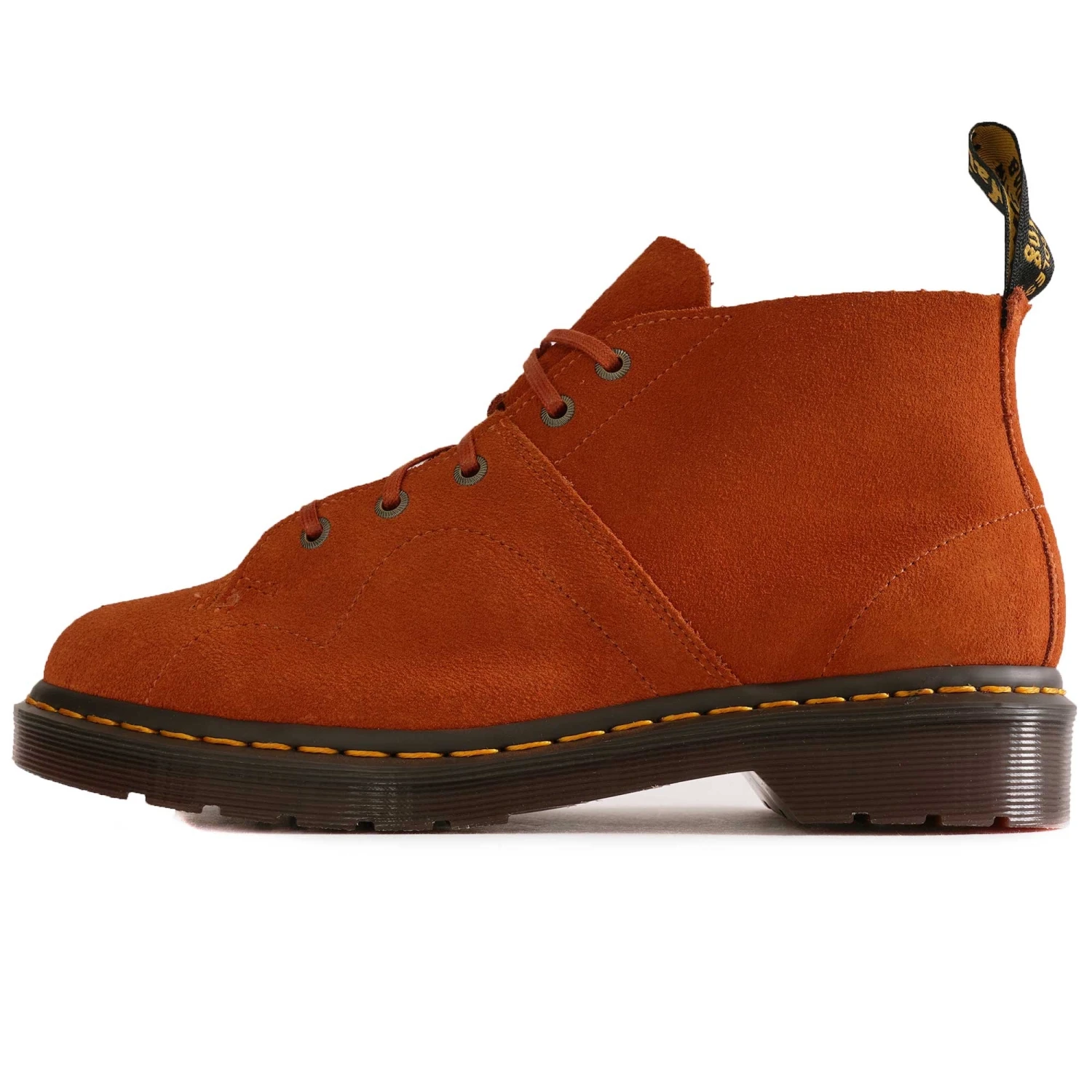 They reproduce DM’s designs from the past in their Archive line, seam by seam, down to the last yellow welt stitch. The DM’s Church boot, first produced in the 1970s, is their spin on the traditional monkey boot. A 5-eyelet, ankle-length silhouette interwoven with DM’s DNA. This seasonal remake is made from EH Suede in rust tan or dark brown and has subtle laces and antique gold eyelets. Distinguished by its signature yellow welt stitching and written AirWair heel loop.