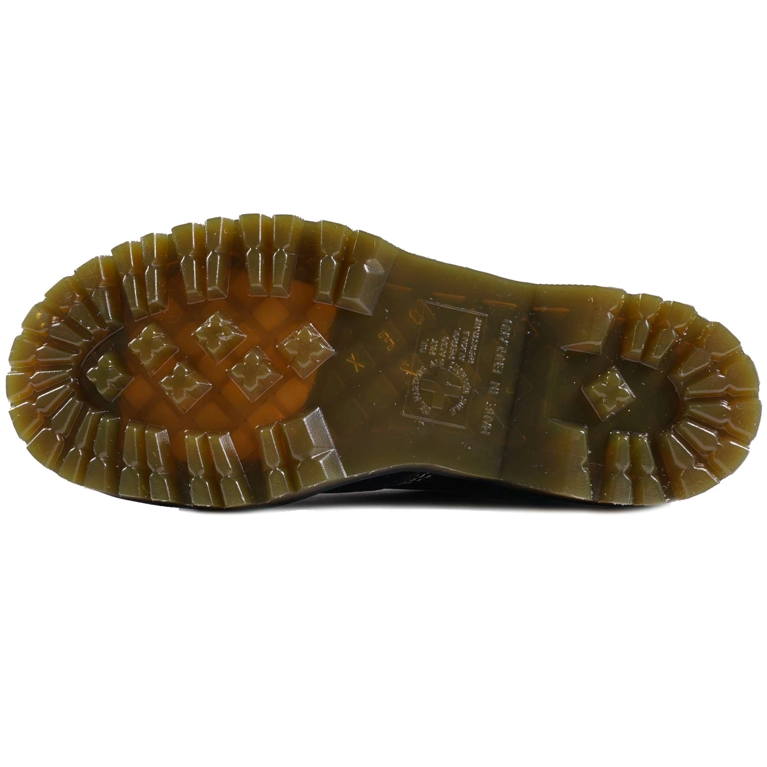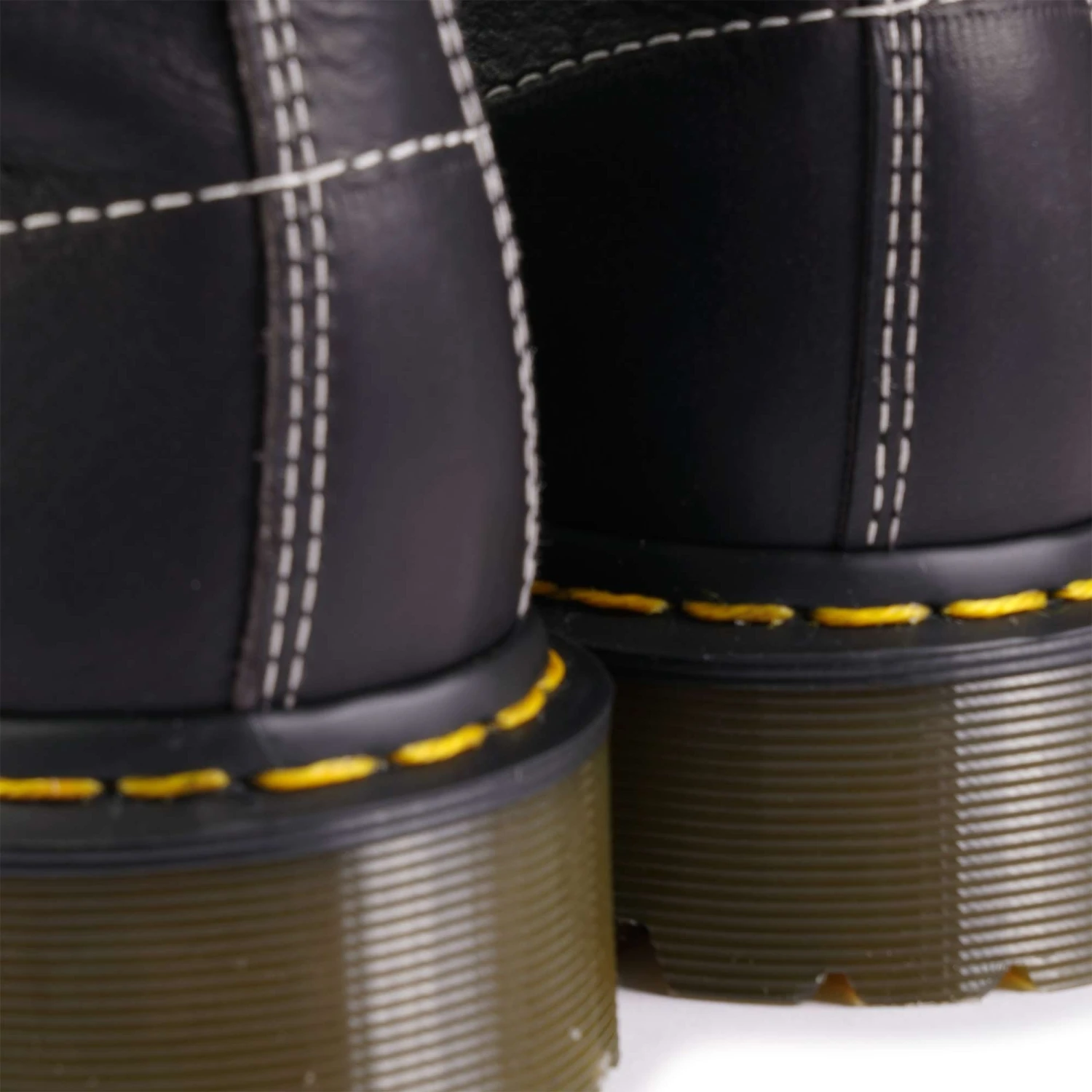 The first DM’s boot was born on 1st April 1960. We made it right the first time — but they still dip into their archive to find new ways to express their heritage. This new boot is expertly handcrafted with a bump toe shape reminiscent of the 1460 boot’s origins as utilitarian workwear. Built using Phoenix leather from C. F. Stead. The boot is stacked with exaggerated Dr. Martens DNA: built on a heightened Bex outsole and secured with contrast Puritan stitching on the upper. The silhouette is detailed with antique gold eyelets, a tannery swing tag and a black and gold DM’s heel loop. The rugged sole is punched with Dr Martens unmistakable yellow welt stitching.