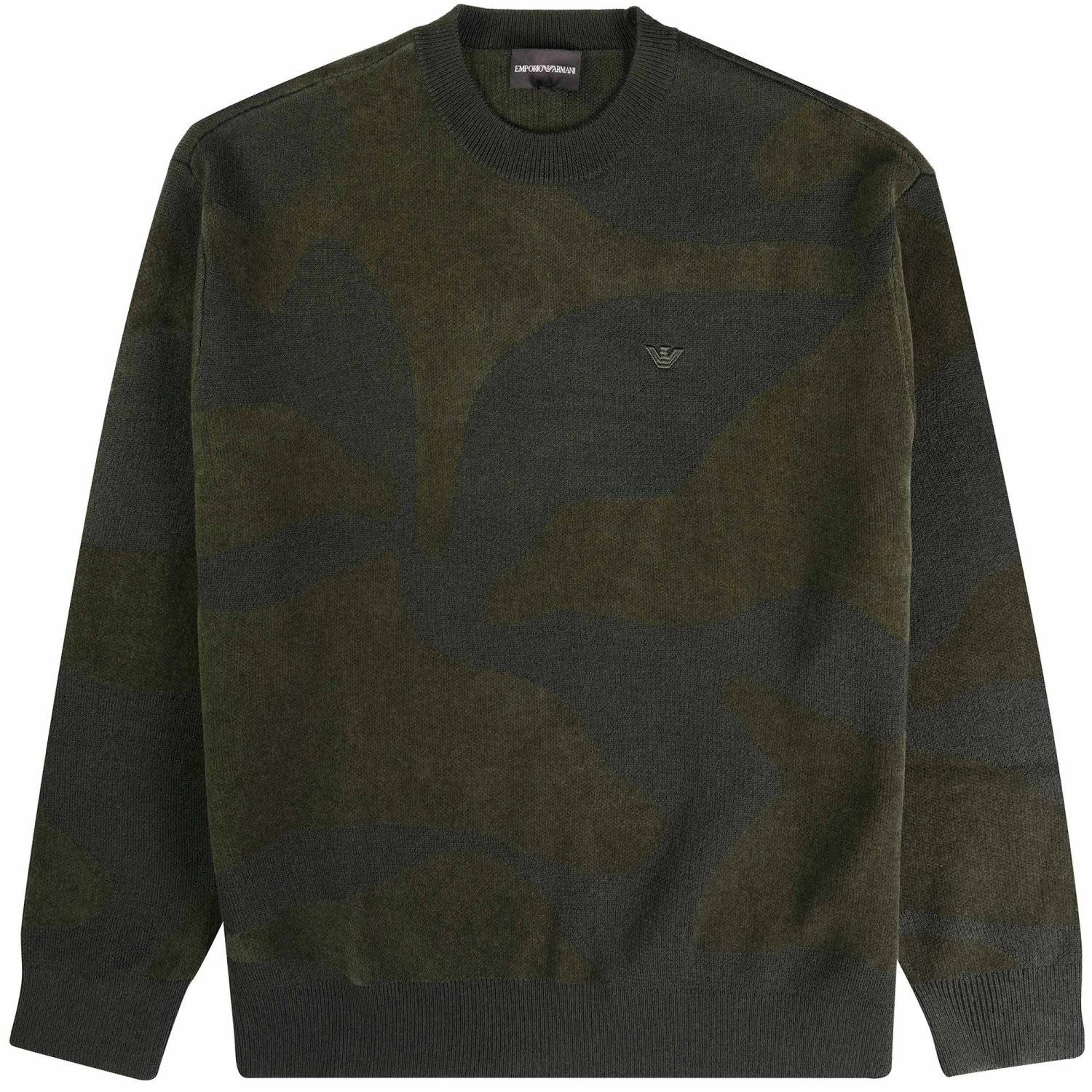 Crew-neck jumper in soft chenille with a signature camouflage motif created through a matching knit intarsia. A pattern with a classic urban appeal that adapts to everyday wear.