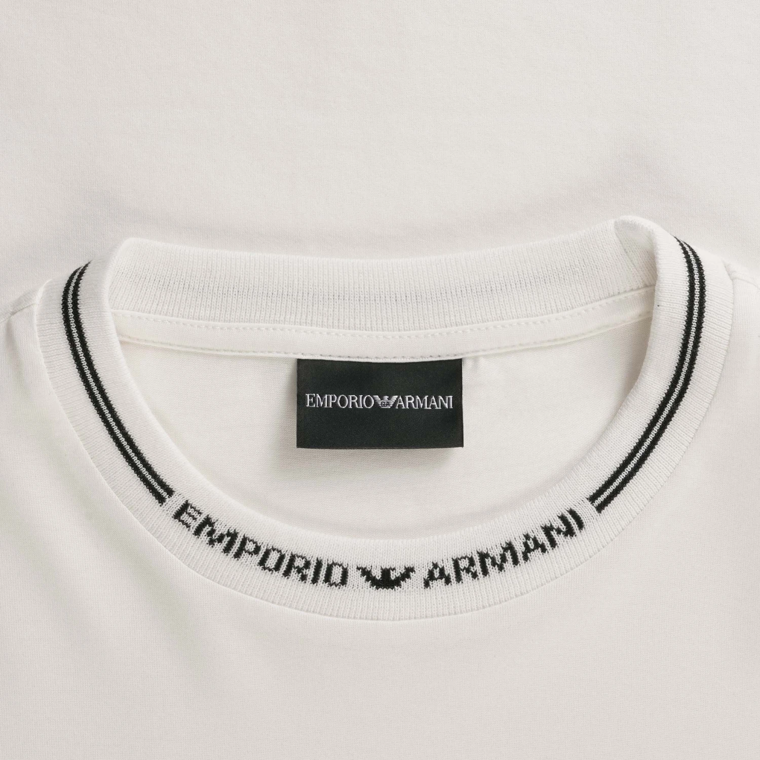 Regular-fit T-shirt made from a cotton and Lyocell blend jersey. Lyocell is a semi-synthetic fibre that has an exceptionally low impact on the environment. It is derived from eucalyptus leaves and is valued for its good resistance, capacity to absorb moisture, excellent breathability and for being wrinkle-resistant. The Emporio Armani jacquard logo adorns the crew neck or armholes depending on the style chosen.