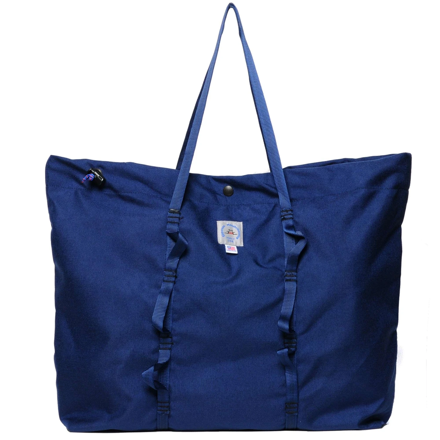 EM’s Large Climb Tote combines the casual portability of a classic tote bag with the ruggedness of durable rock climbing gear. Water-resistant Cordura nylon fabric combined with mil-spec tubular nylon webbing make it rugged and durable while snap button closure and climbing-spec ‘daisy chain’ webbing (a chain of small loops reinforced with bar-tacks) along the face of the bag increase utility and round out the iconic climbing aesthetic.