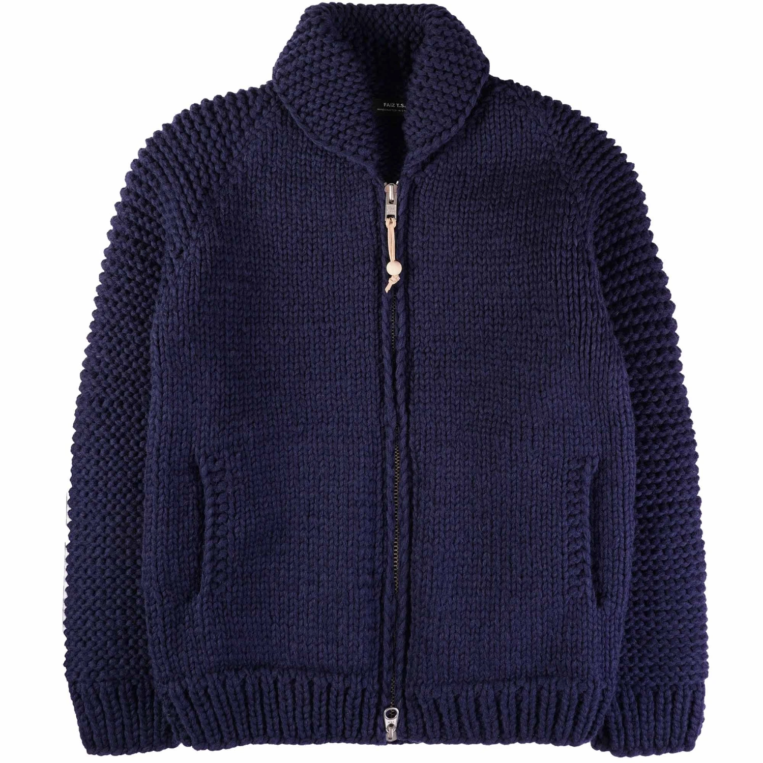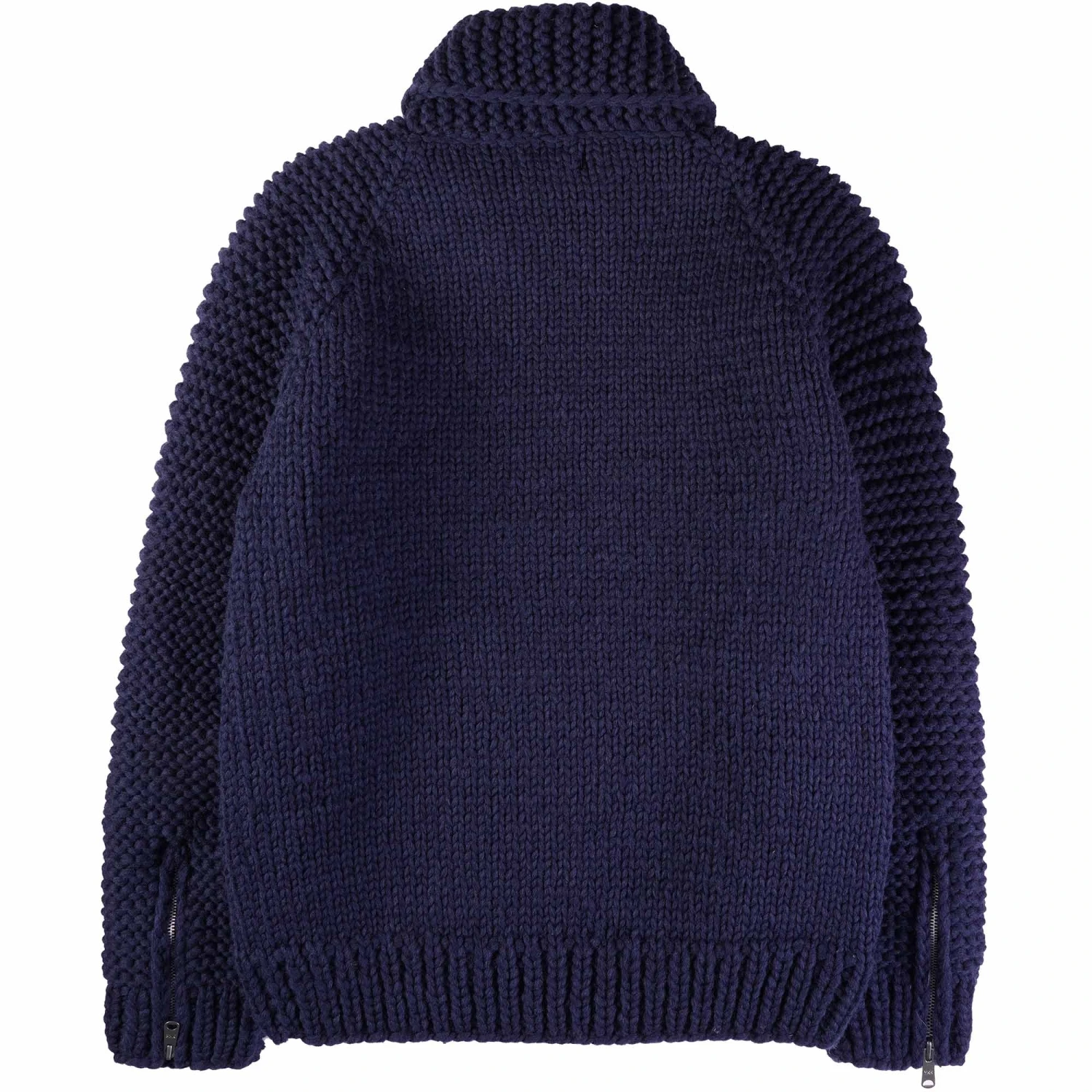 This Heavyweight Moto Knit Sweater is hand-knit in Canada from virgin Canadian wool, just way they used to, carrying on the tradition of the elaborate, hand-knit sweaters manufactured and worn by the Coast Salish people of the Cowichan Valley in the early 1900s. For cold, coastal climates and other places where cosiness is strongly desired, these sweaters make the perfect outer layer. Time taken to hand-knit this style is approx 3-4 weeks per size. It is an immense amount of specialist craftsman’s hours utilised to make just one unit.