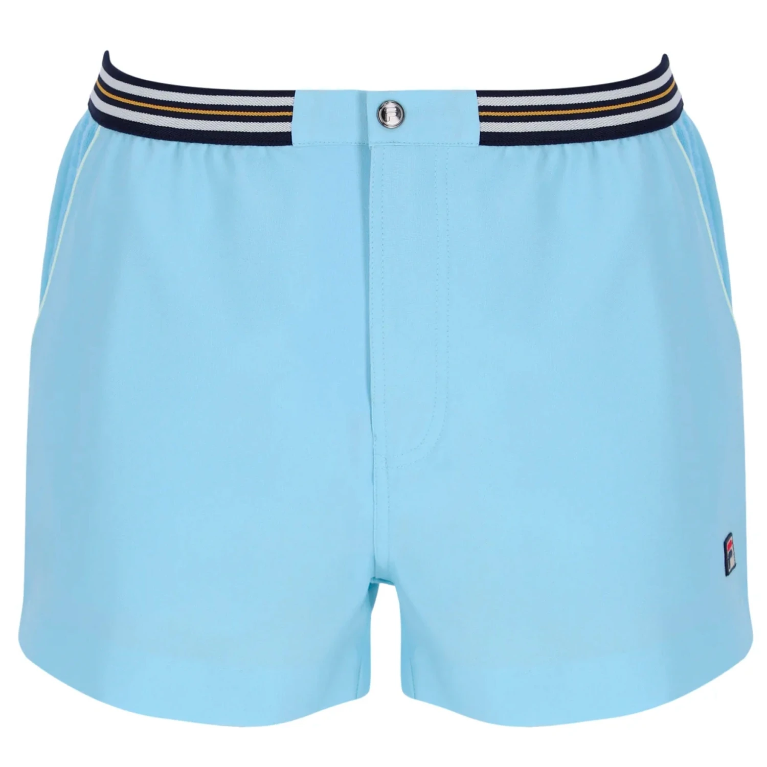 The vintage-inspired Hightide Stripe Shorts features an elastic waistband designed with a snap button fastening, dual side pockets, and terry towelling fabric.