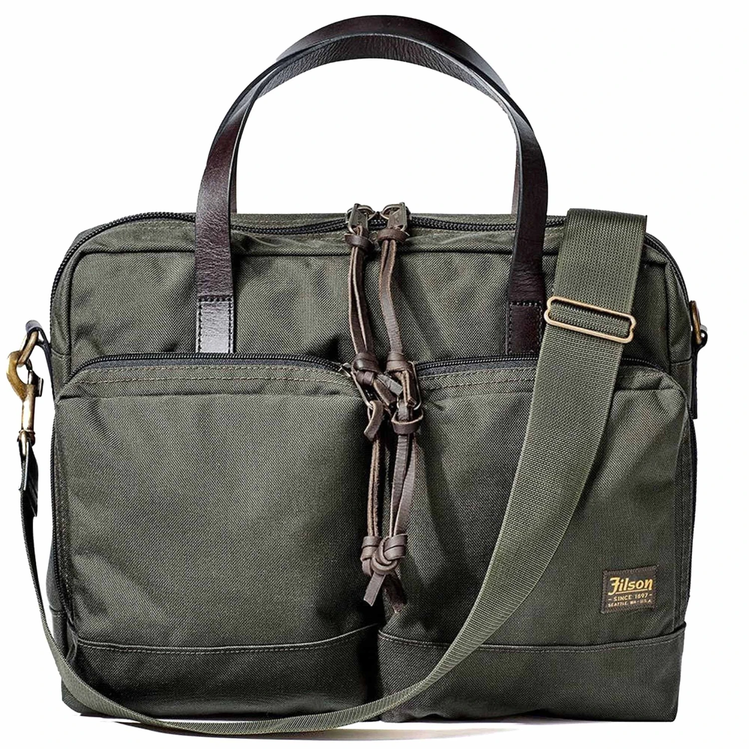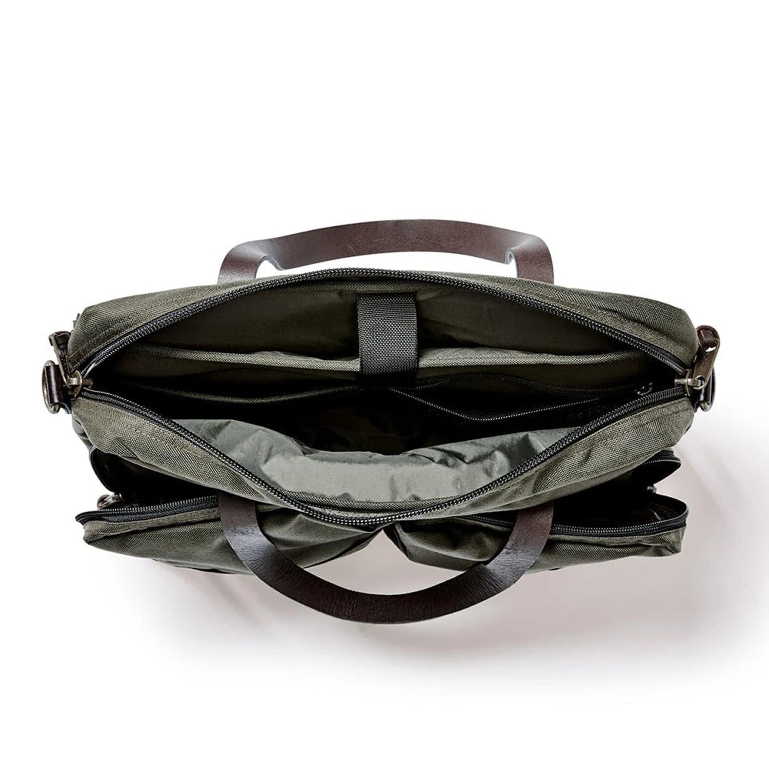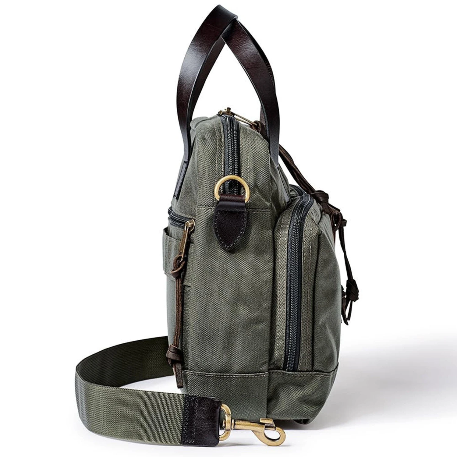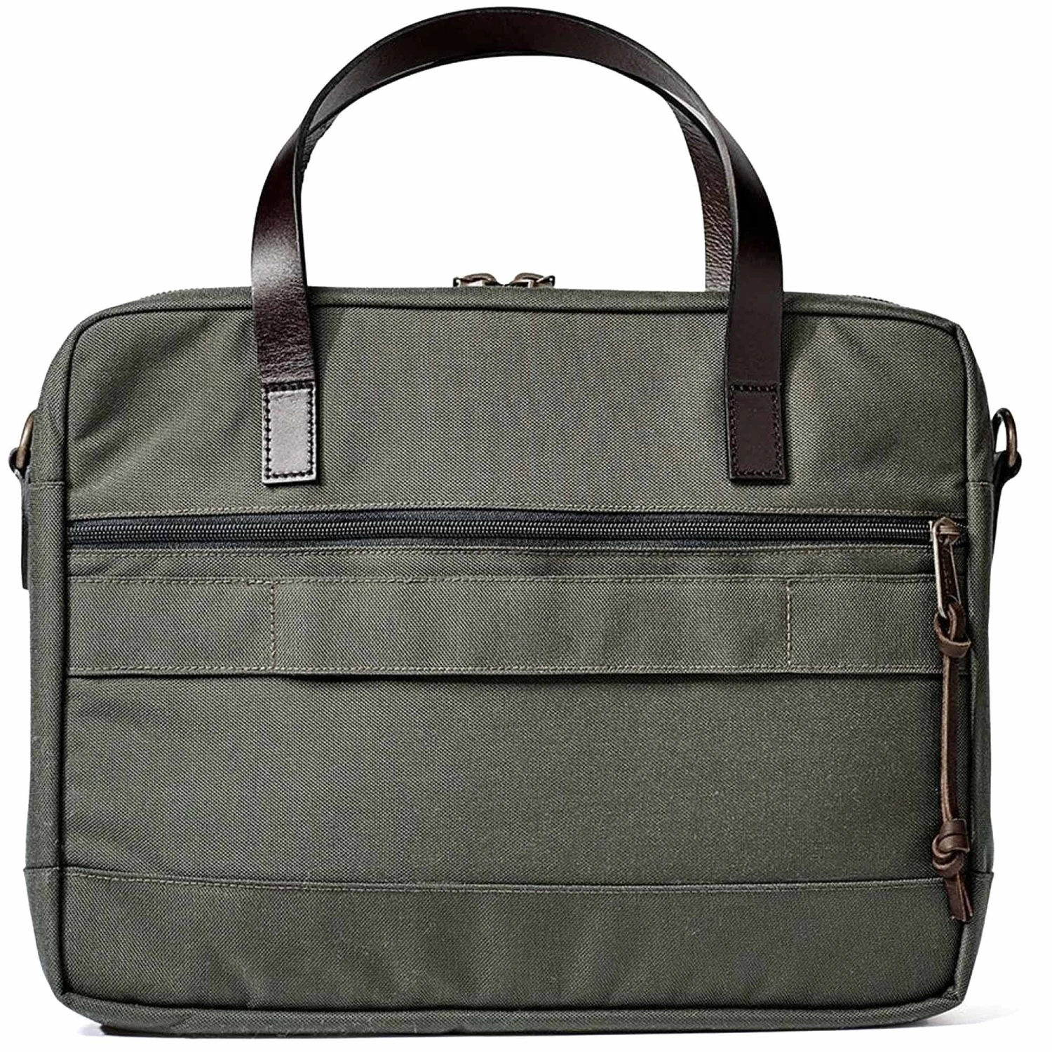 The rugged and versatile Filson Dryden Briefcase is made of abrasion-resistant ballistic nylon that holds up to the roughest of environments. A briefcase made for the adventurer, this heavy duty bag will withstand the abrasions of daily life as well as any other harsh environment that other bags simply are not designed to handle. A padded sleeve fits laptops up to 15″, a built in trolley strap makes this the perfect companion on flights. Rugged brass zips for all compartments and two front pockets will keep all essentials to hand.
