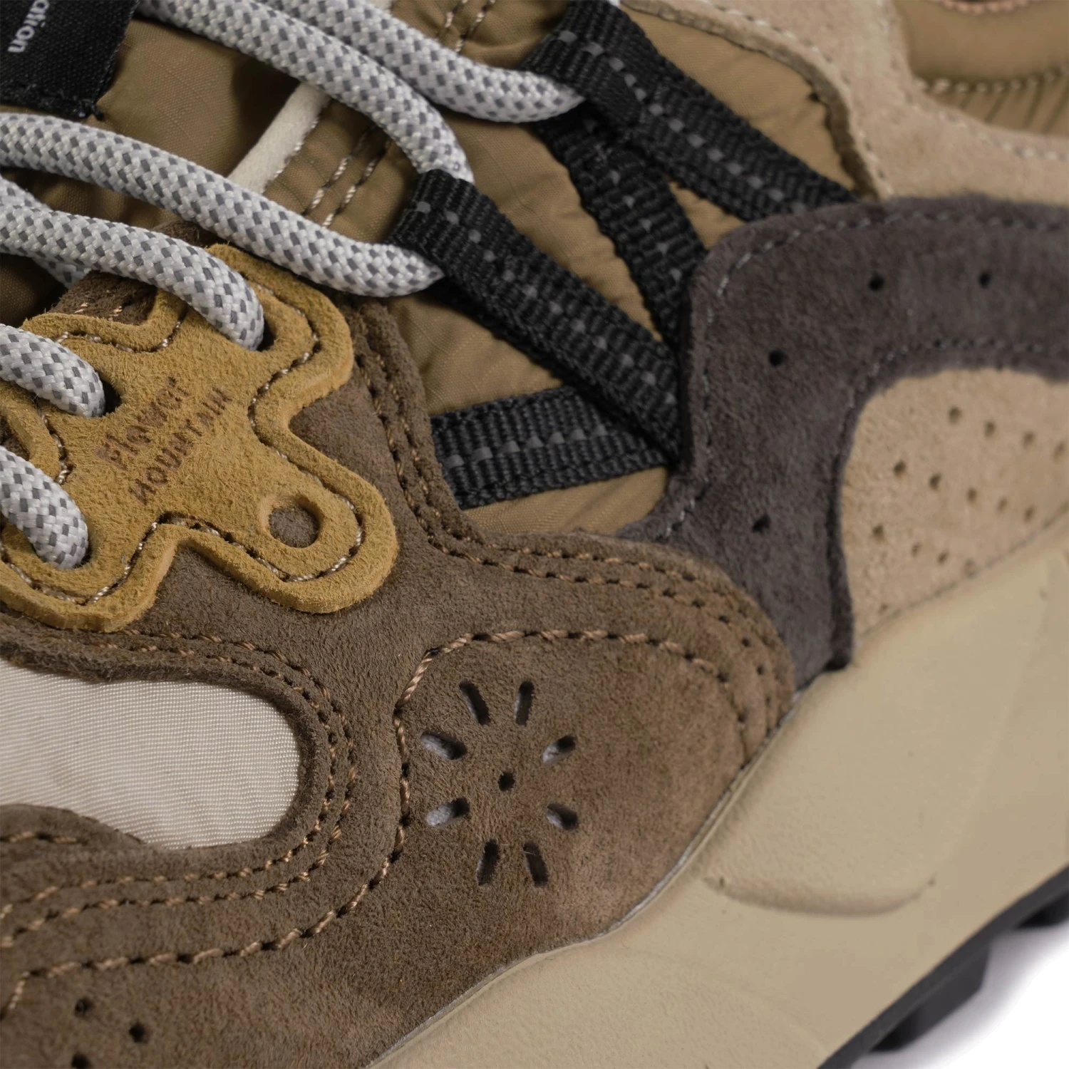 The YAMANO 3 collection has been designed to convey the uniqueness of Flower Mountain, its love for nature, and its commitment to high-quality craftsmanship. The brand’s outdoor spirit is captured through details inspired by the shapes and cycles of nature: layered design elements, dotted lines tracing gentle curves, hiking laces, and iconic leather eyelets. The result is an iconic sneaker that embraces the foot, while the lines, embroidery, and hand-stitched upper showcase a dedication to high-quality craftsmanship and Japanese inspiration.