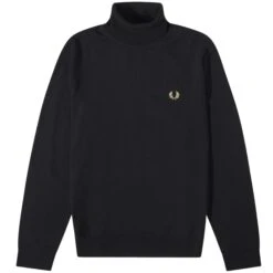 A roll neck jumper, knitted in a blend of cotton and ethically-sourced merino wool. A smart staple with subtle Fred Perry details. With a slightly fitted silhouette and high neck, our jumper is designed with the clean lines of modernism in mind.