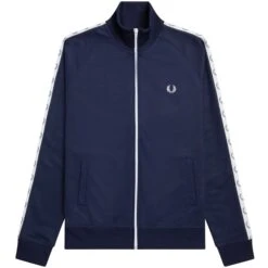 The track jacket is a recognisable Fred Perry classic and one of our most enduring items, and it is an important part of our legacy. The track jacket was popularised in British subculture during the Britpop period, when bright colours and man-made fibres were first used to team uniforms. It has never lost its impish appeal since. Our taped jacket is made from the same cotton/polyester tricot as the original and features signature design embellishments. The white coil zip and Laurel Wreath track tape were formerly symbols of the 1970s’ cash-strapped era, when branding had to be generic to all colours.