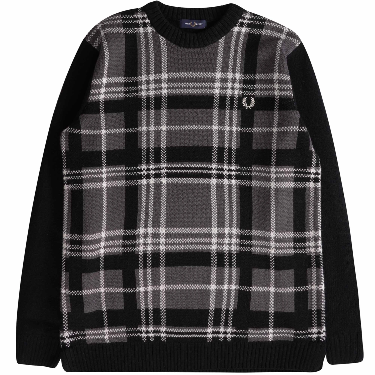 Fred Perry introduces this Tartan Panel Jumper featuring a classic crew neck, long sleeves, ribbed collar, hem and cuffs and is complete with the iconic Laurel Wreath embroidered on the chest.