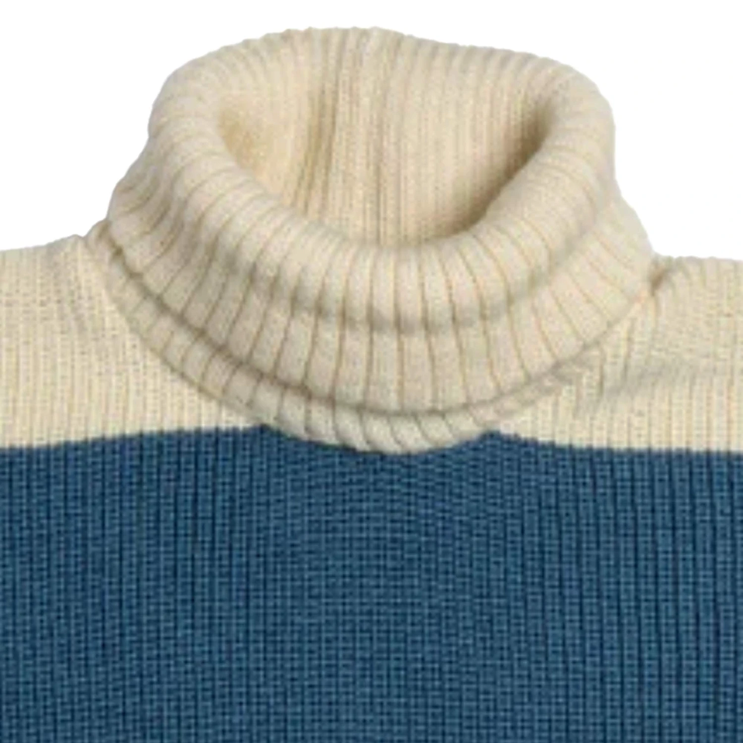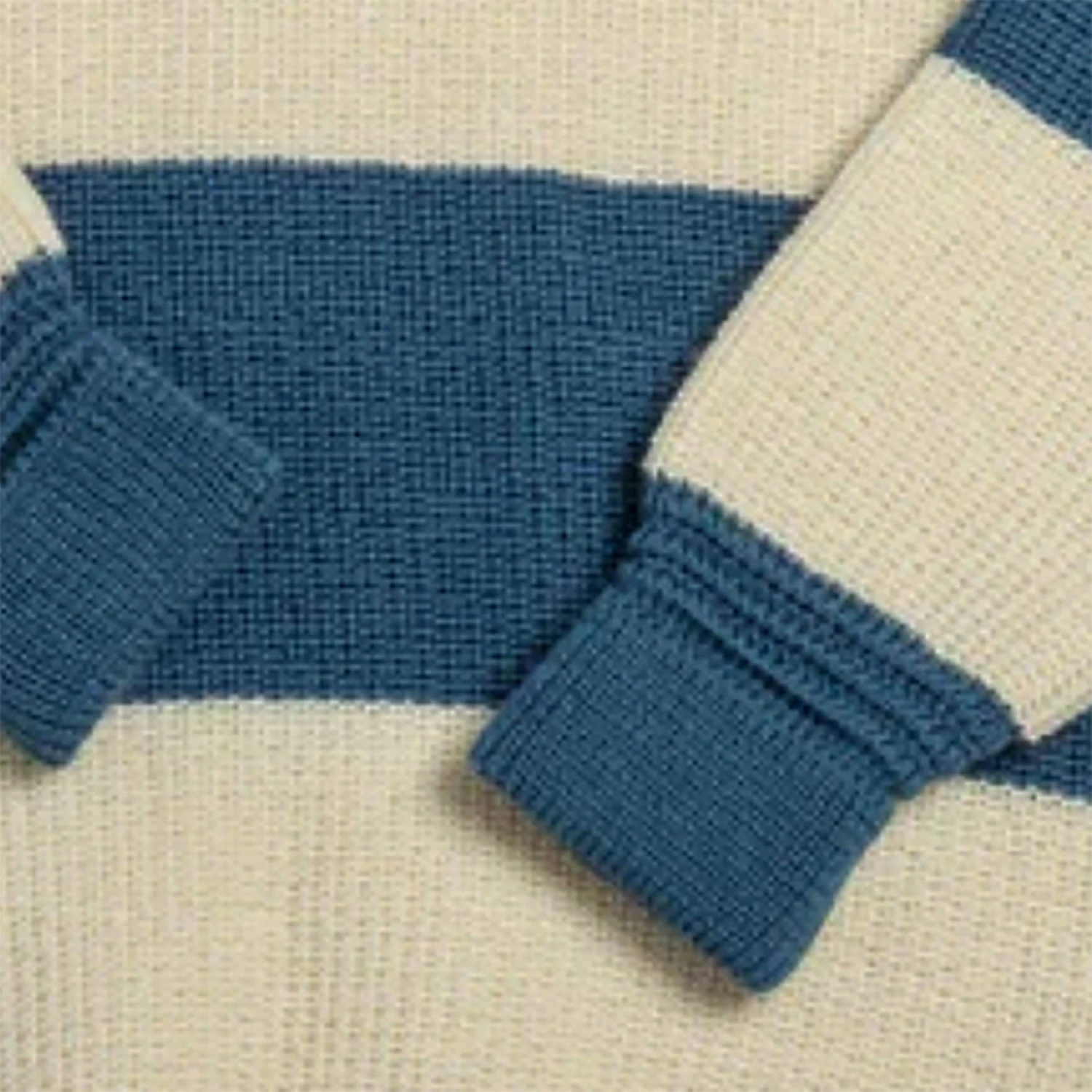 Using the same block as the core heavy knit jumpers, the bold knitted stripes take their inspiration from uniforms worn by sailing teams, and pitstop crews in motor racing. It’s comprised of a full kilogram of wool with the signature heavy 5-gauge knit, that’s designed to keep you warm on even the coldest of days. Made from extra-long fibres, its highly resistant to pilling and will look continue to look fantastic even after years of regular wear, and unlike most knitwear producers we leave the natural oils in our wool yarn, meaning their jumpers have self-cleaning and water-resistant properties. The sleeves and collar are attached by hand, which is more time consuming and labour intensive than using a standard machine stitch but results in a superior finish.