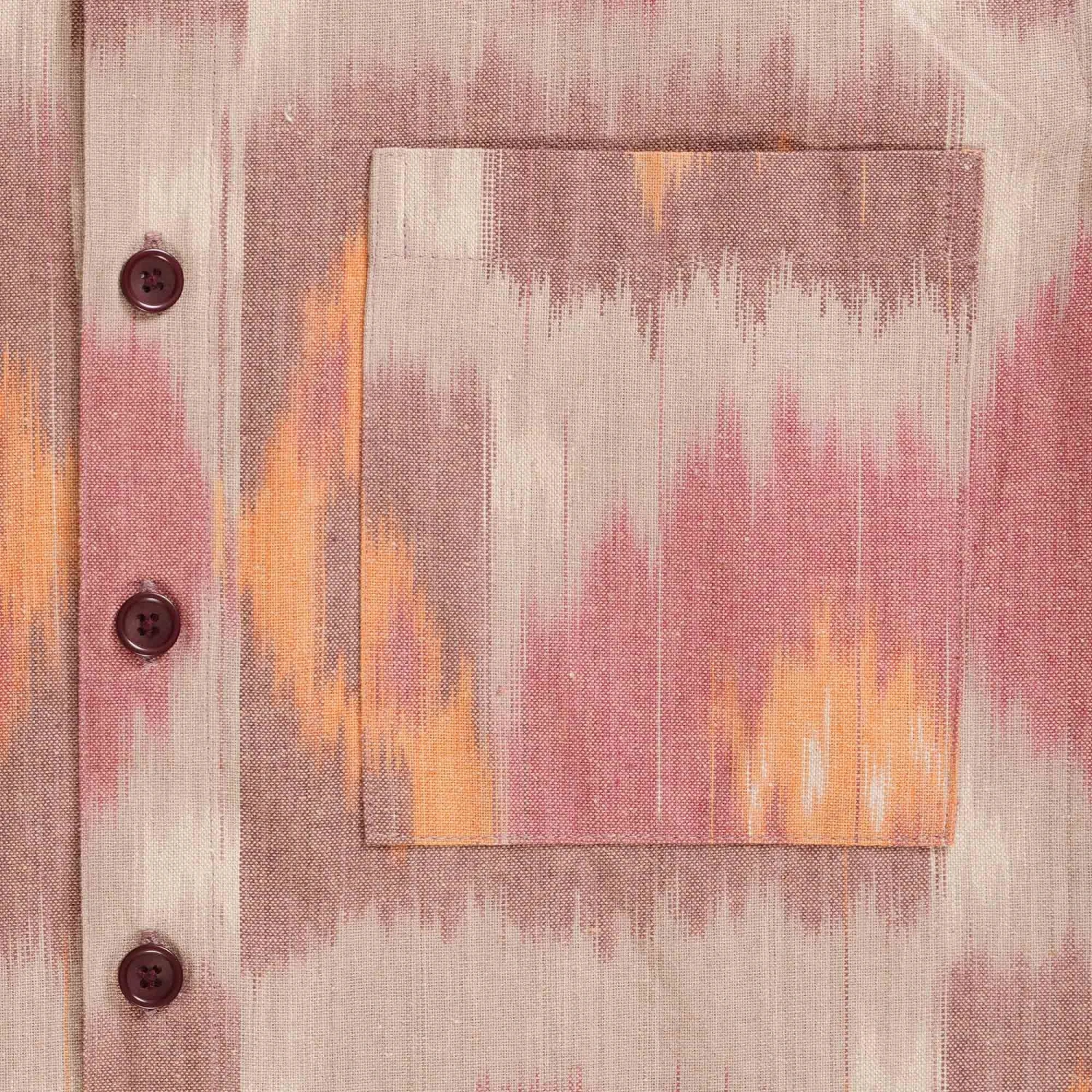 Ikat is a resist dyeing technique involving binding yarns and dyeing them to create a pattern before weaving on a handloom. The process may be repeated multiple times and in different colours in both warp & weft to create the desired pattern. The “blurry” characteristics of an ikat weave are the result of the extreme difficulty for the weaver to line up the dyed yarns in a perfect formation, especially in complicated patterns or multiple colours.