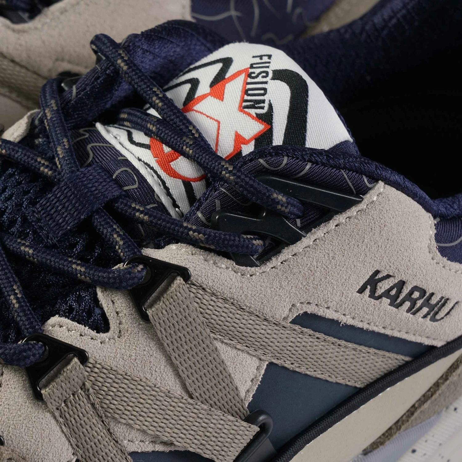 This season, Karhu is showcasing their newest Fusion XC trainers. These grey-coloured shoes combine an outdoor edge with a nostalgic style thanks to their suede and mesh uppers. A sticky rubber outsole provides the best traction, while fulcrum technology ensures a bounce with each stride thanks to its installation in the midsole.