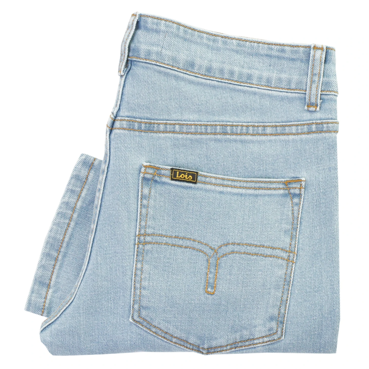 80s Bleach wash denim by Lois a strong look for any season. We advise to wear this denim option casual, it’s not a dress up jeans, but more an everyday jean. We have styled the Lois Sky denim with a graphic t-shirt by Boss Green and a pair of wallabee shoes by Clarks Originals pictured in the all rounder Cola colour, which can be worn with dark or light denim.