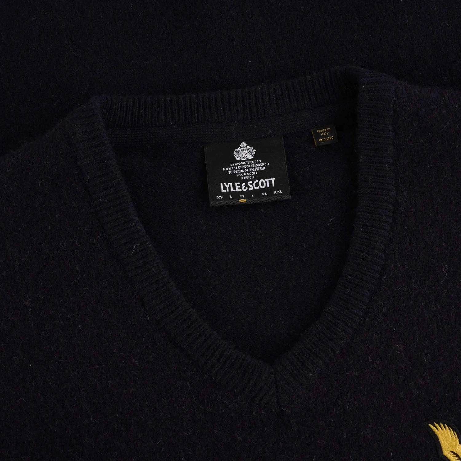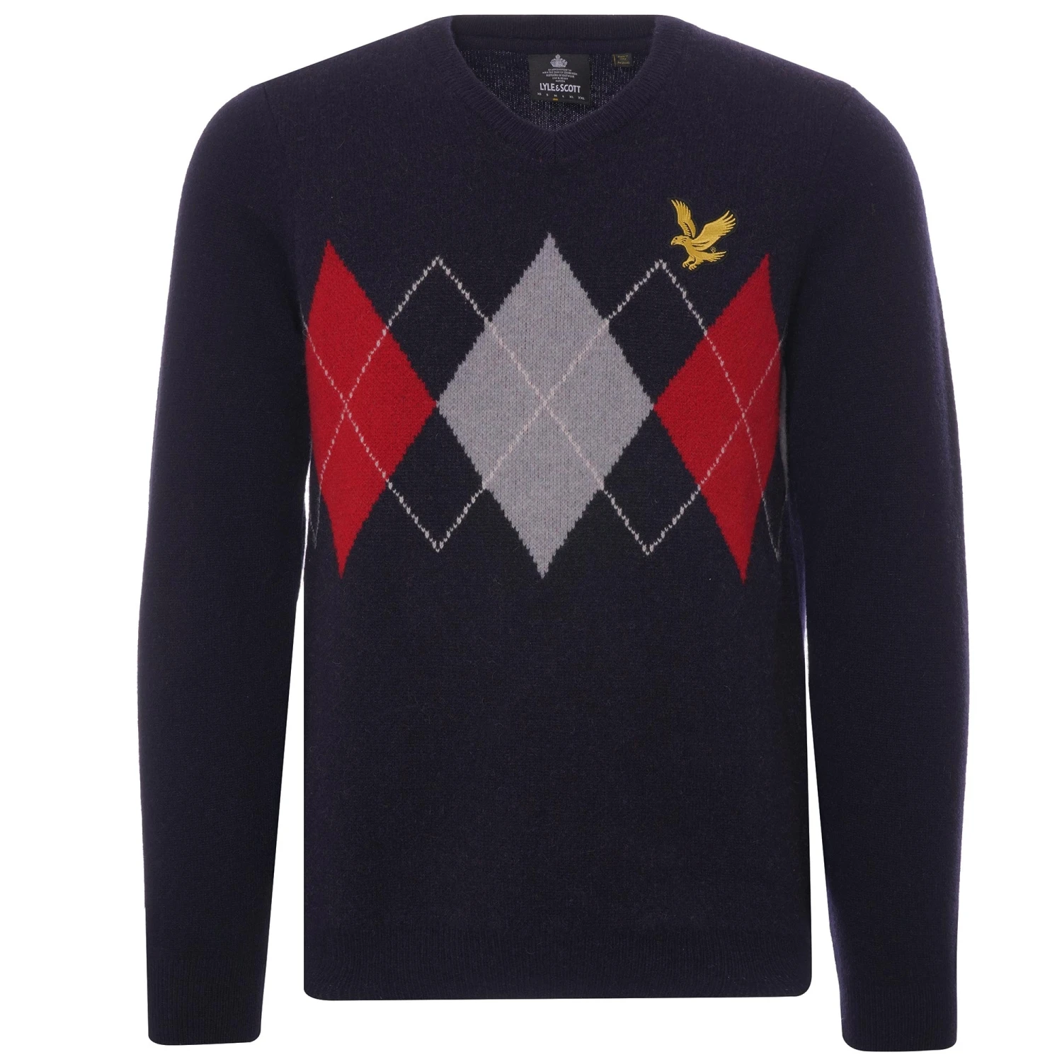 Lyle & Scott X Stuarts London Soft Italian Lambswool Argyle Chest Band V-Neck Jumper – Dark Navy