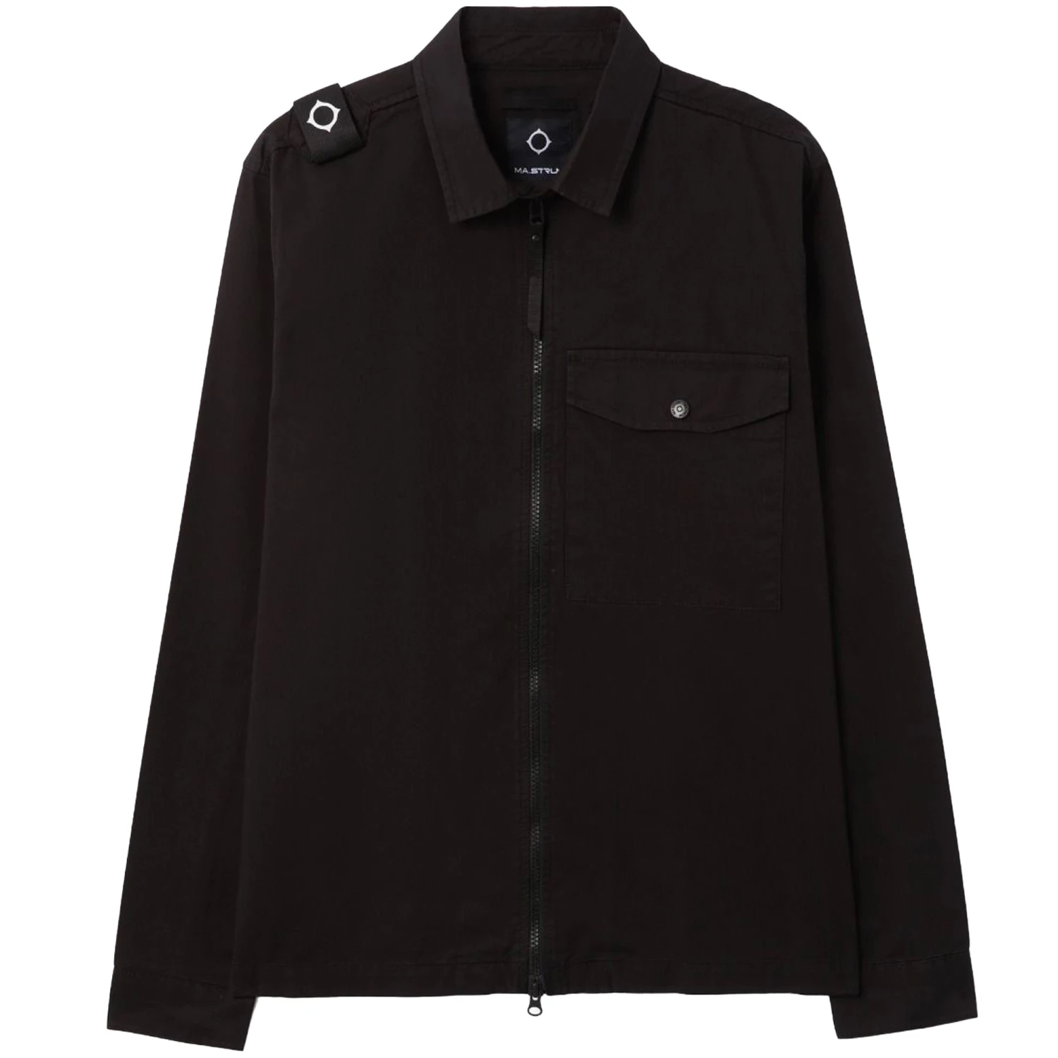 Full Zip Overshirt made from cotton Gaberdine garment washed to achieve a laundered finish with a soft handle. Features a dual full zip front and a stand-up collar. The overshirt also has a left chest snap fasten pocket.
