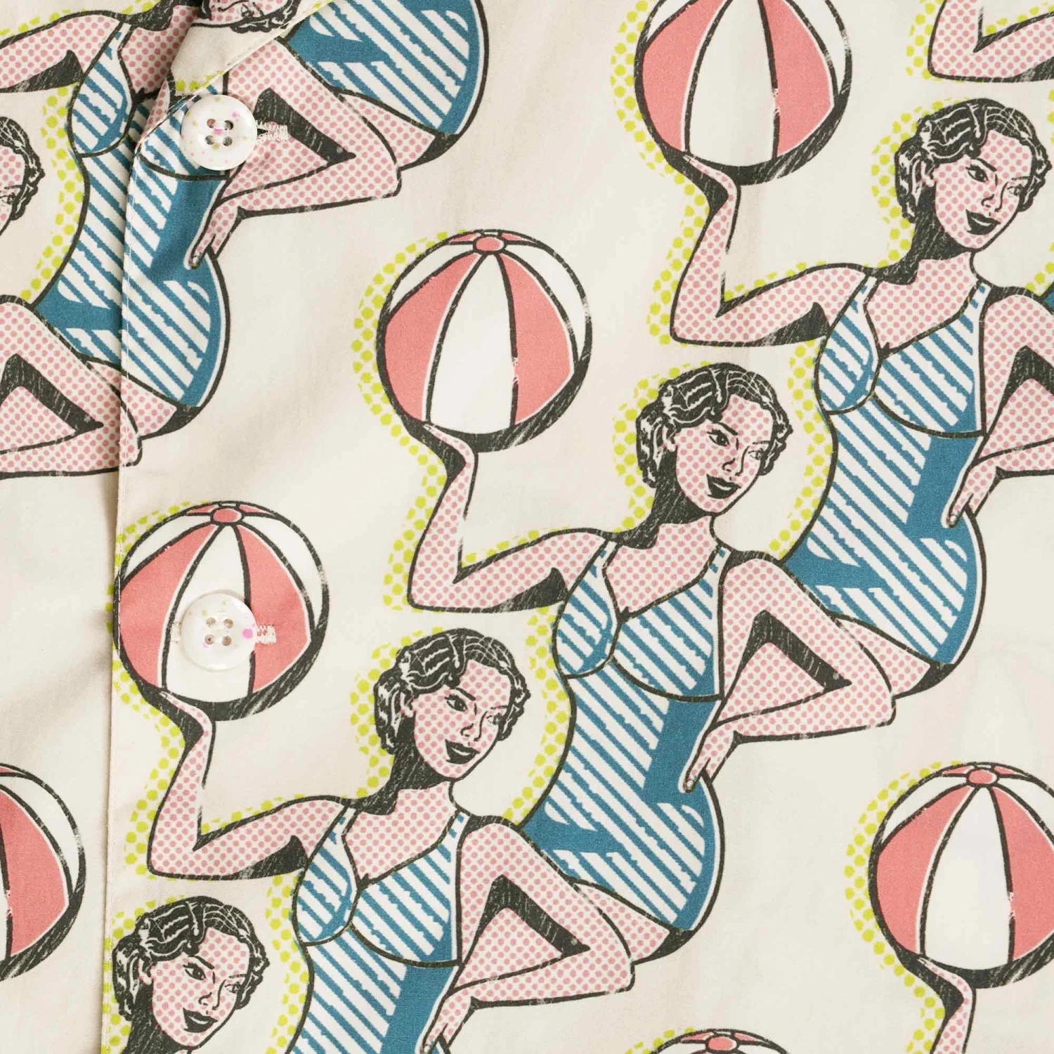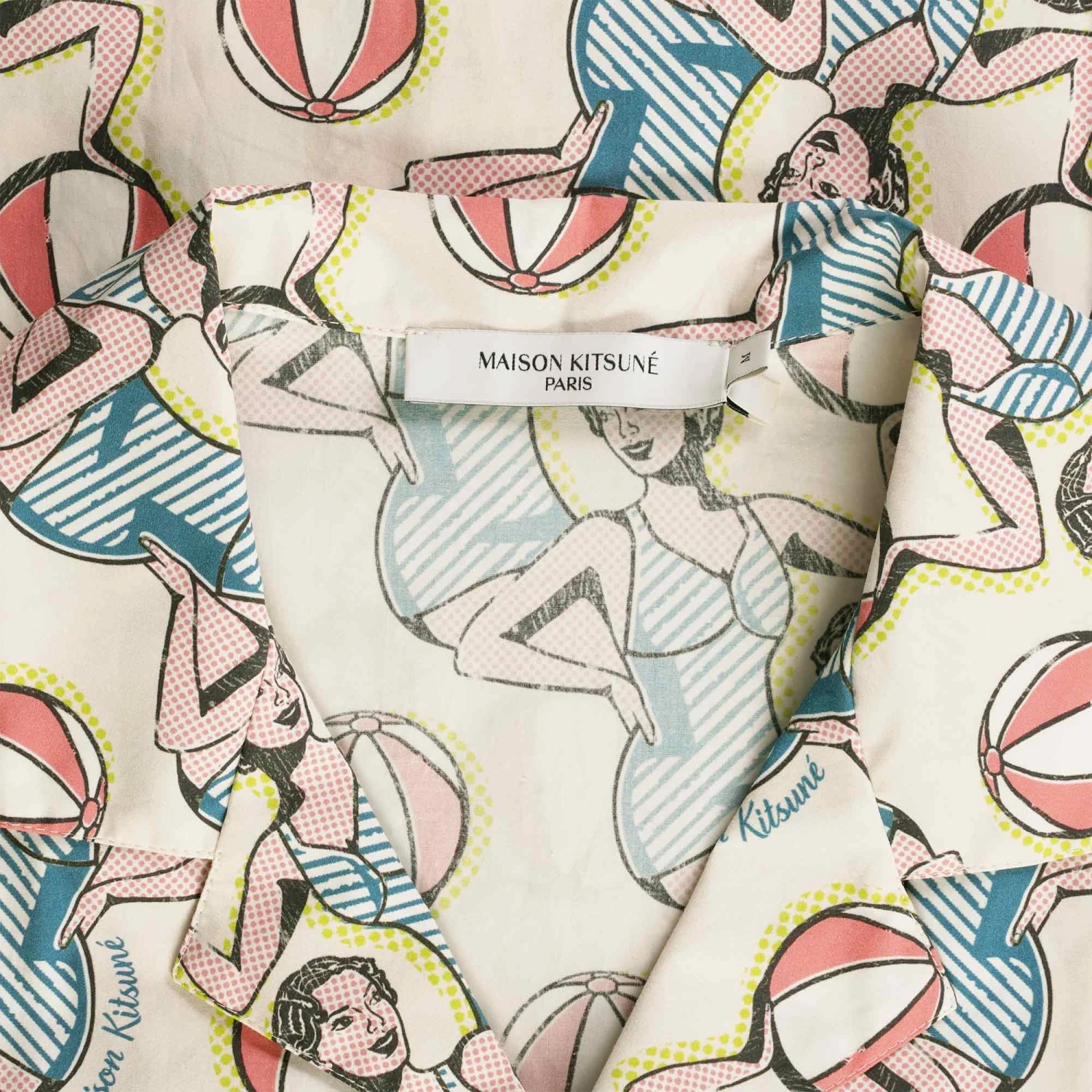 A Collection signed Maison Kitsuné and Hotel Olympia. This Cotton shirt features a classic cut with “Dancing girls” print, a full button down closure, short sleeves and Maison Kitsune branding throughout.