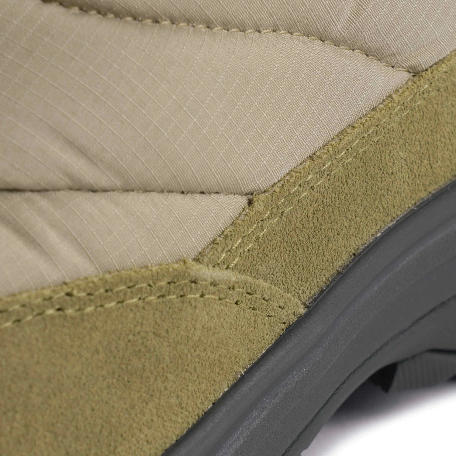 - 100% recycled nylon ripstop and waterproof pig suede leather upper