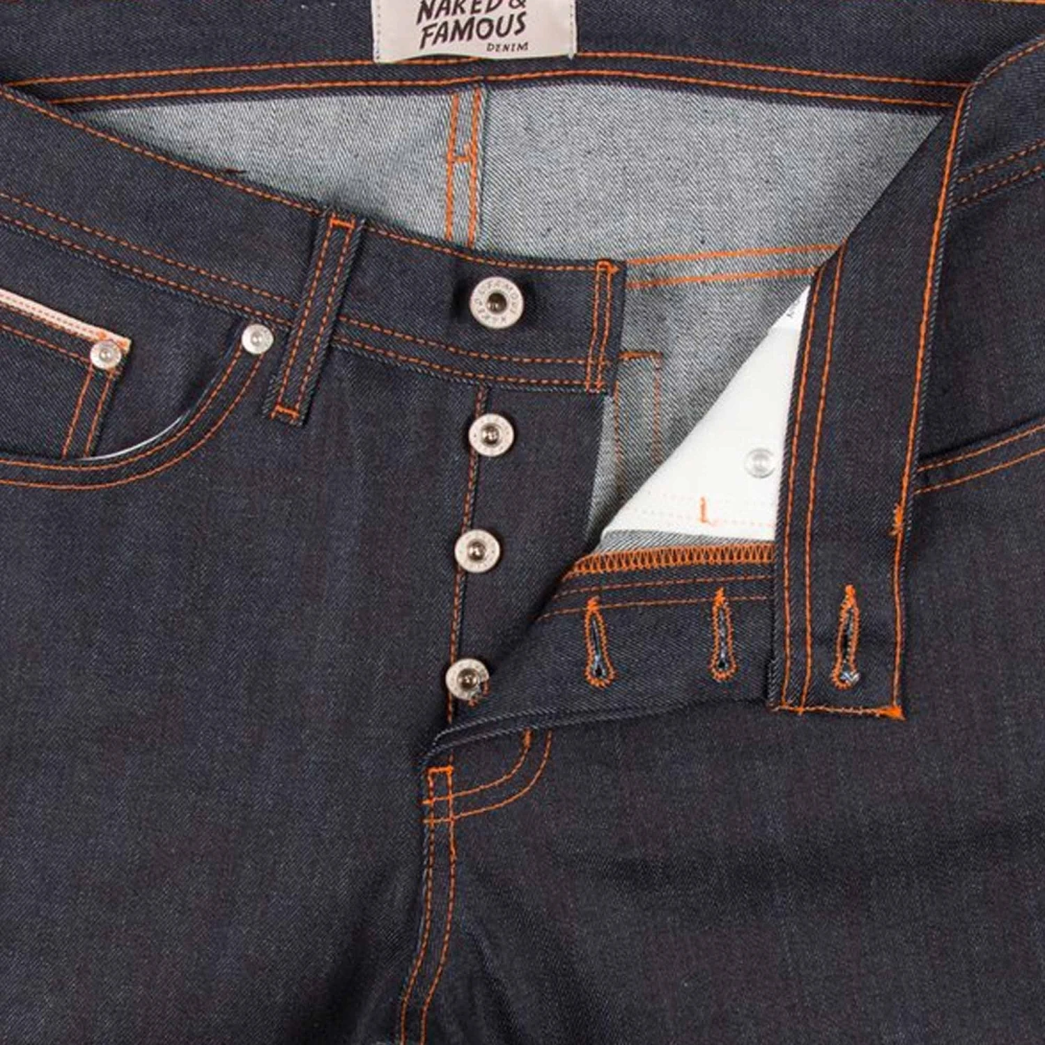 11oz lightweight indigo rope dyed Japanese selvedge denim, woven on vintage shuttle looms in a right-hand twill construction. The Indigo dyed warp and white weft combined with a red line selvedge ID give these jeans a classic look. The fabric is tightly woven giving the jeans a uniform surface appearance. This denim is made with 2% stretch for added comfort, without compromising durability.
