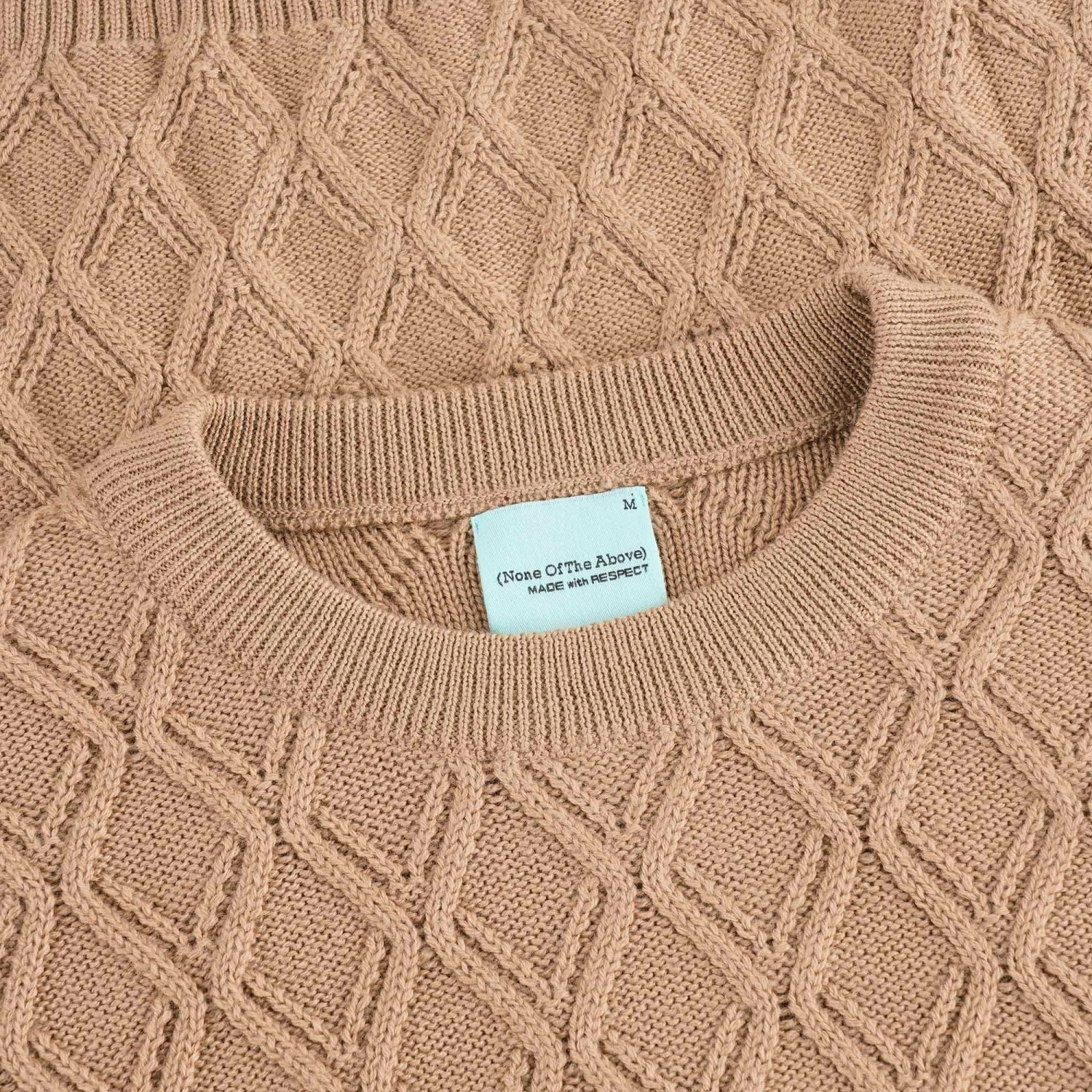 The Diamond Textured Jumper from British label None Of The Above is a beautifully constructed Merino Wool Pullover in an alluring textured style. Featuring cable knit & ribbed detailing throughout, the fitted jumper boasts a textured diamond design and contrast None Of The Above label woven to the inner neck.