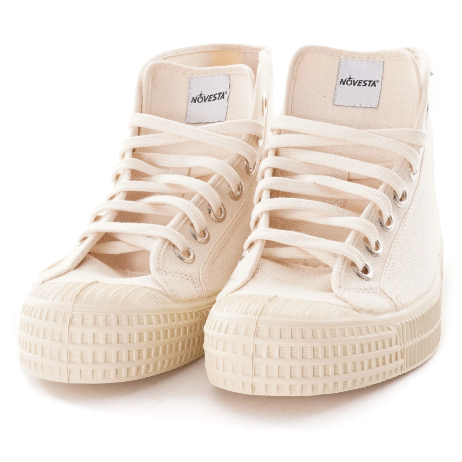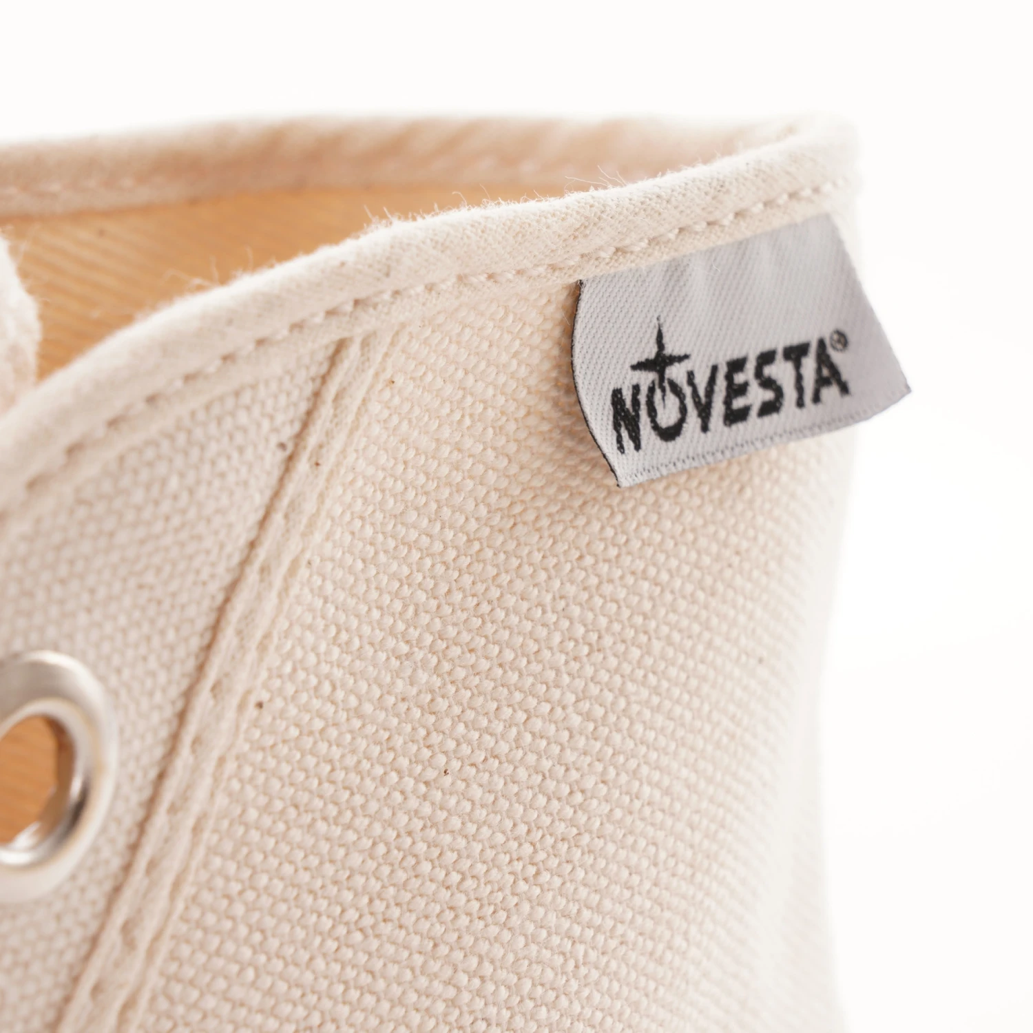 Experts in creating minimalist designs with superior construction, Slovakian footwear brand Novesta continue to produce the same quality footwear that they always have. Handmade since the 1930’s their iconic Star Dribble silhouette is made with humble machinery that presses the natural rubber soles onto the 100% cotton canvas uppers avoids the use of toxic shoe glues so these beauties are friendly on your feet and our precious planet. This iteration is constructed in the original high top silhouette with chrome eyelet lacing, a rubber shell toe and vulcanised sole. This classic everyday option is effortlessly cool with its understated styling and sketch of an explorer on the rubber outsole.