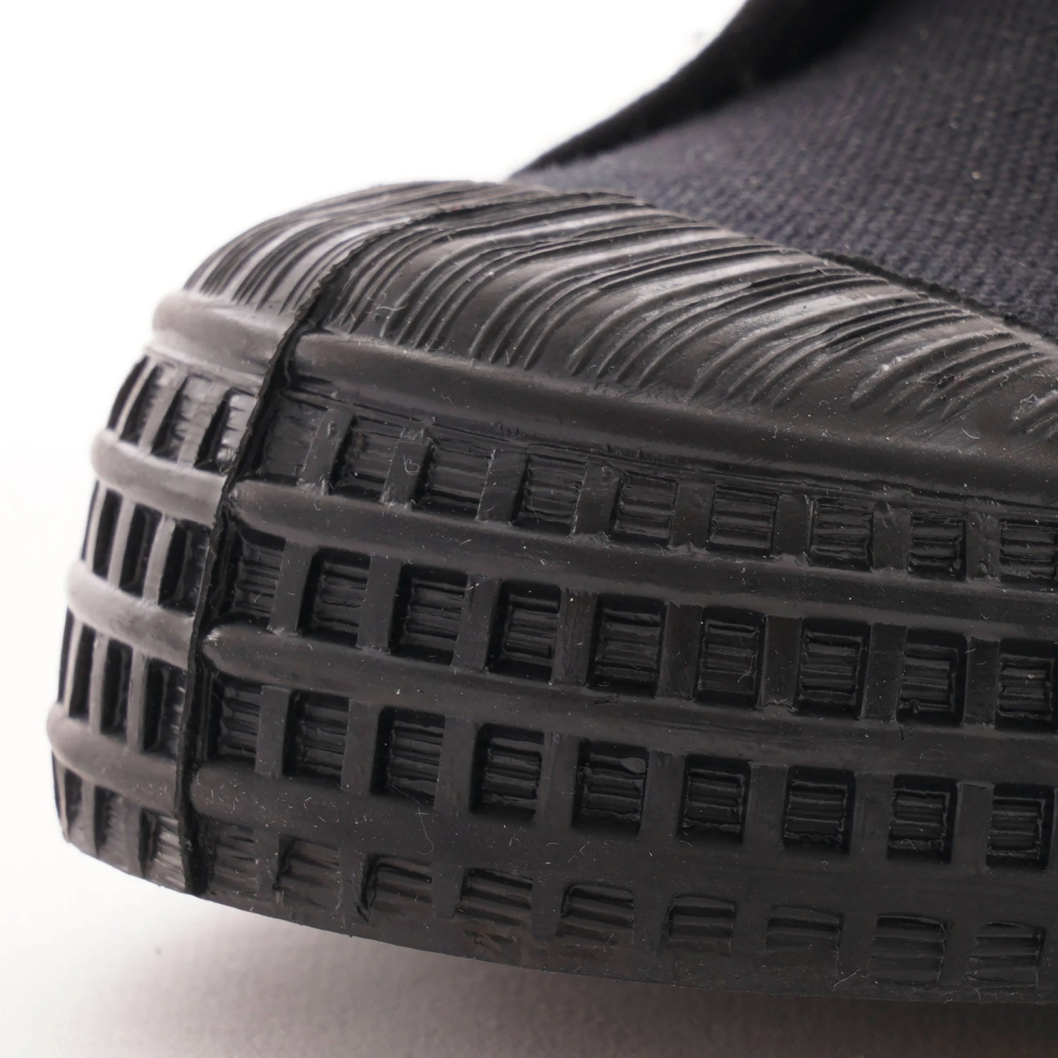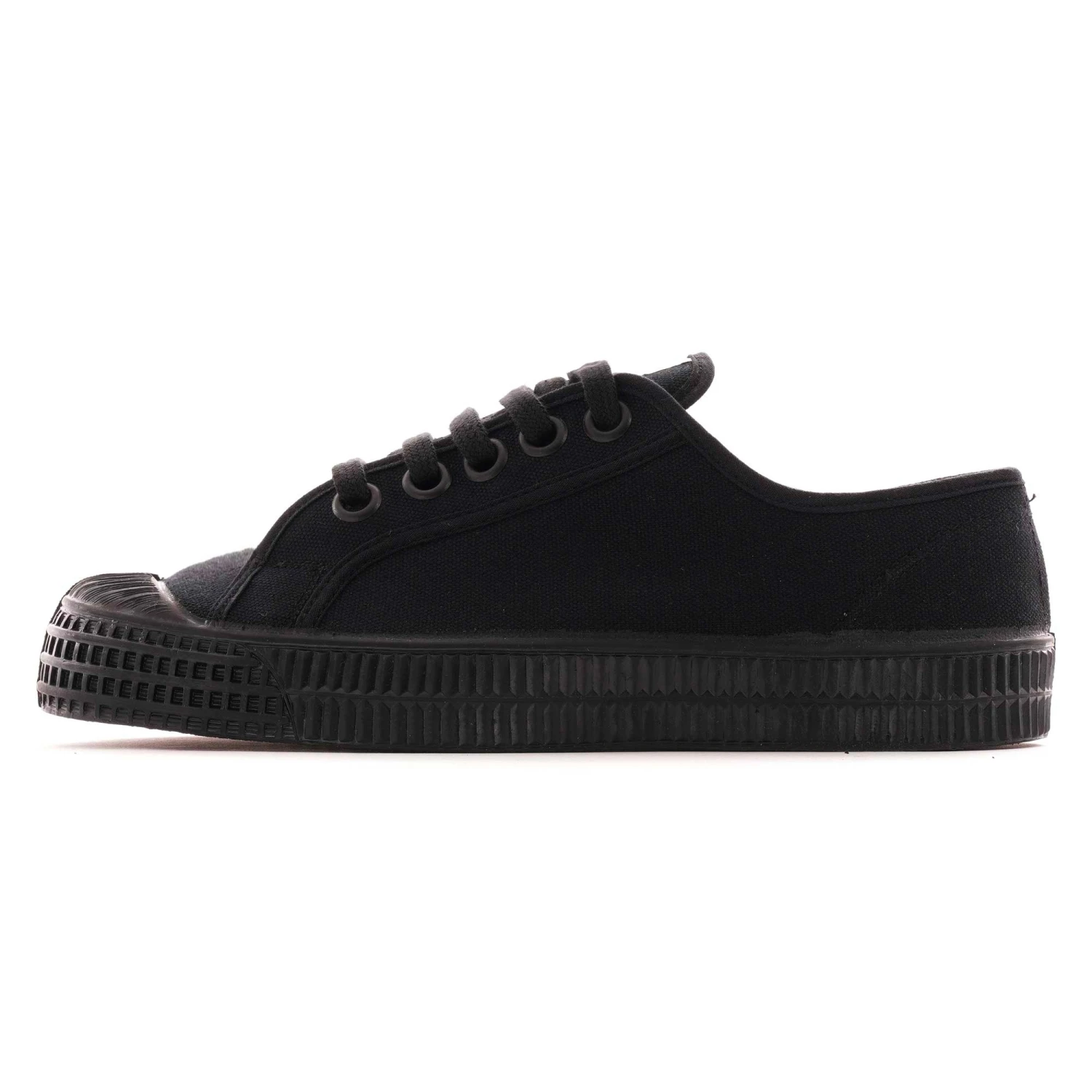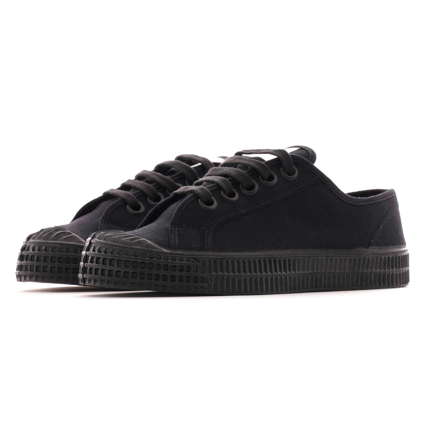 A signature shoe of the Novesta brand, originating as a Slovakian military gym shoe, these canvas shoes pair utilitarian design and handmade charm. Crafted from natural rubber and canvas which ensures the shoes are both durable and eco-friendly and sporting the iconic ‘Trampky’ logo on the sole and the iconic vulcanisation pattern on the outsole. This particular rendition of the Star master is in an all black variant, with blacked out eyelets, a black sole and upper and black laces for an ultra clean look.