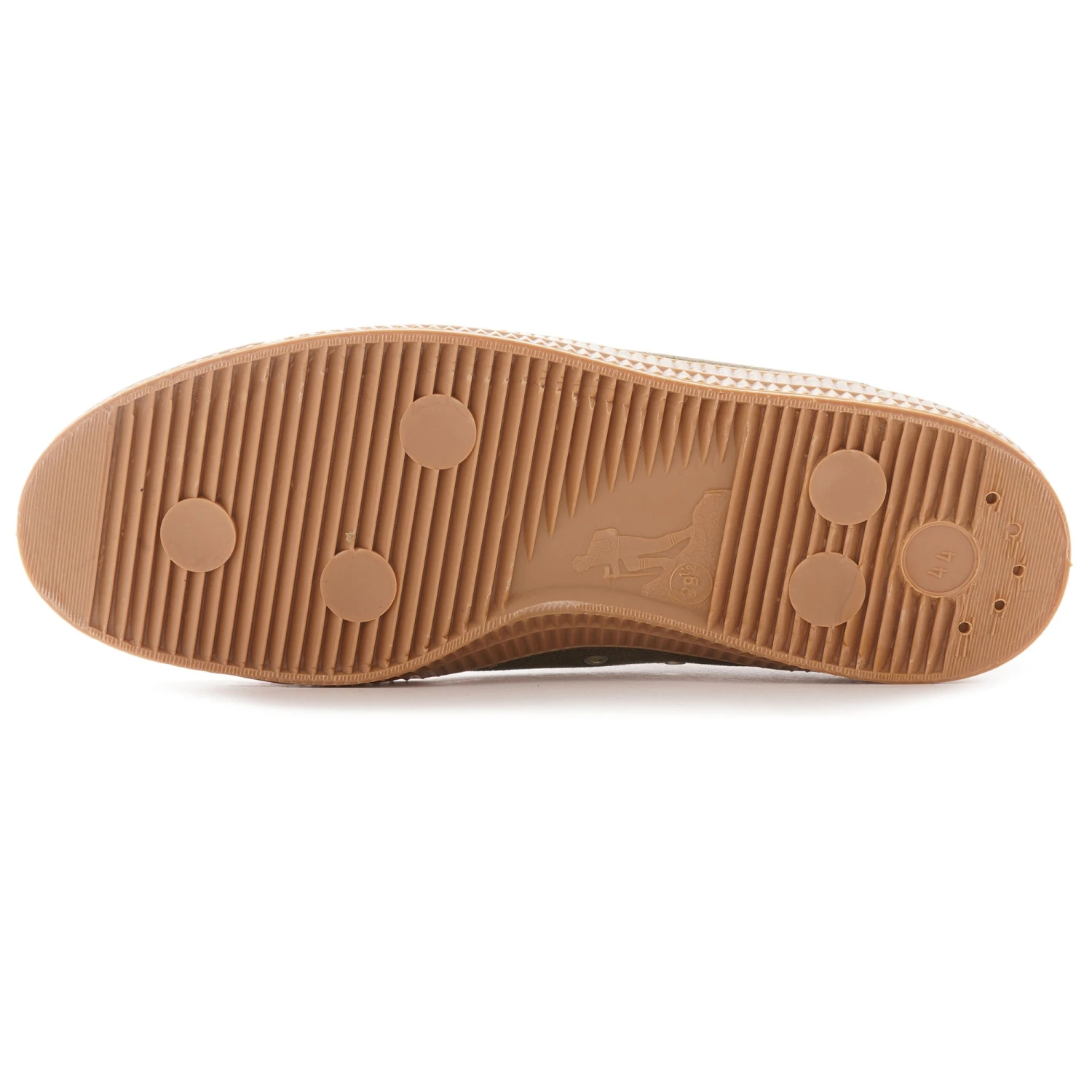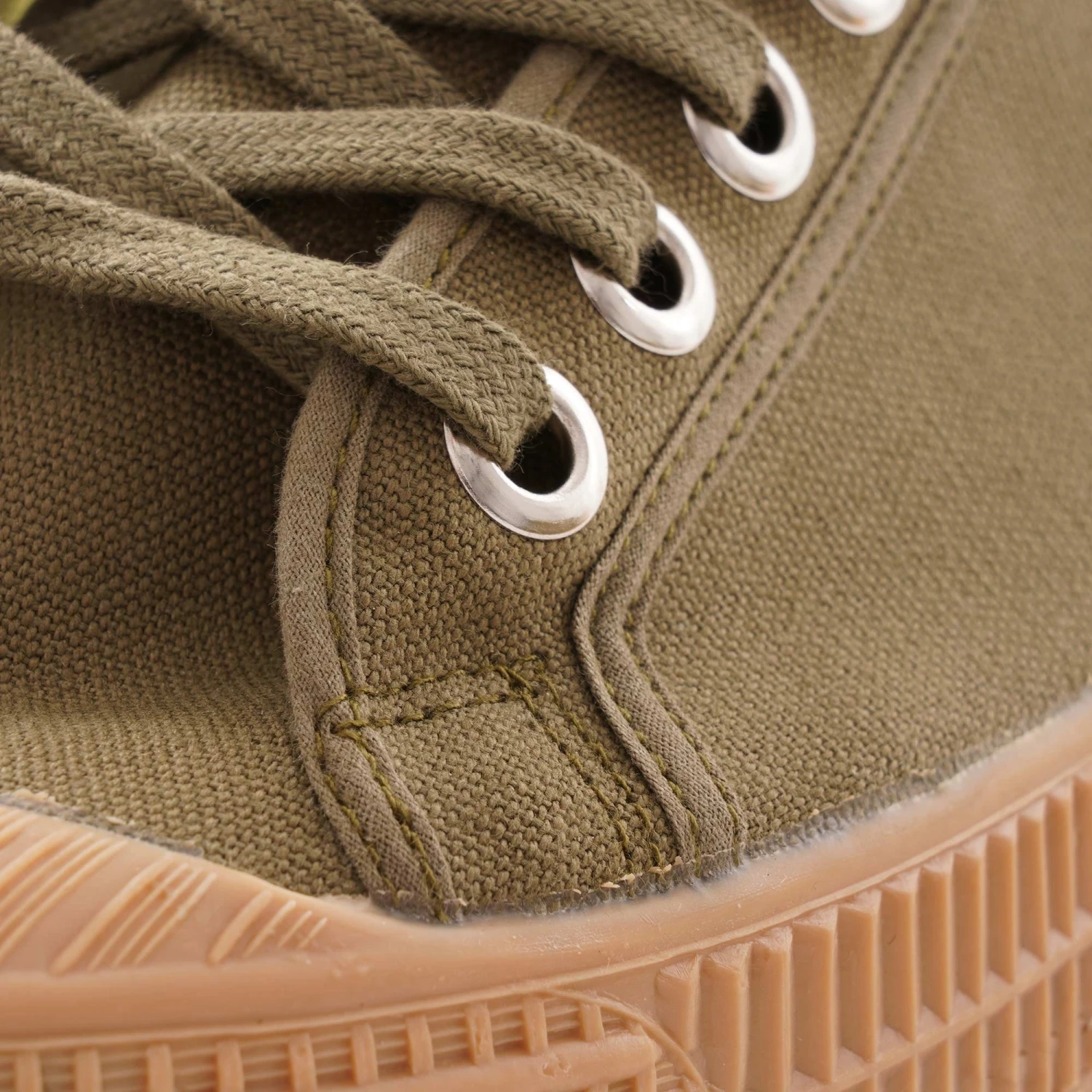 A signature shoe of the Novesta brand, originating as a Slovakian military gym shoe, these canvas shoes pair utilitarian design and handmade charm. Crafted from natural rubber and canvas which ensures the shoes are both durable and eco-friendly and sporting the iconic ‘Trampky’ logo on the sole and the iconic vulcanisation pattern on the outsole.