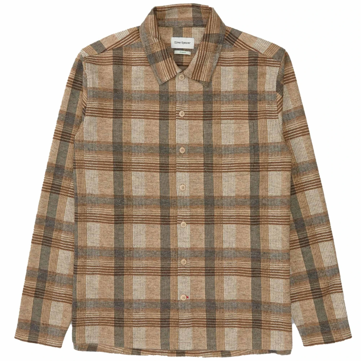 This midweight jersey shirt layer in Oliver Spencer’s tonal ‘Reynolds’ viscose blend is the perfect combination of sophistication and comfort. Ideal for layering through the autumn months and can be paired with casual tailoring.
