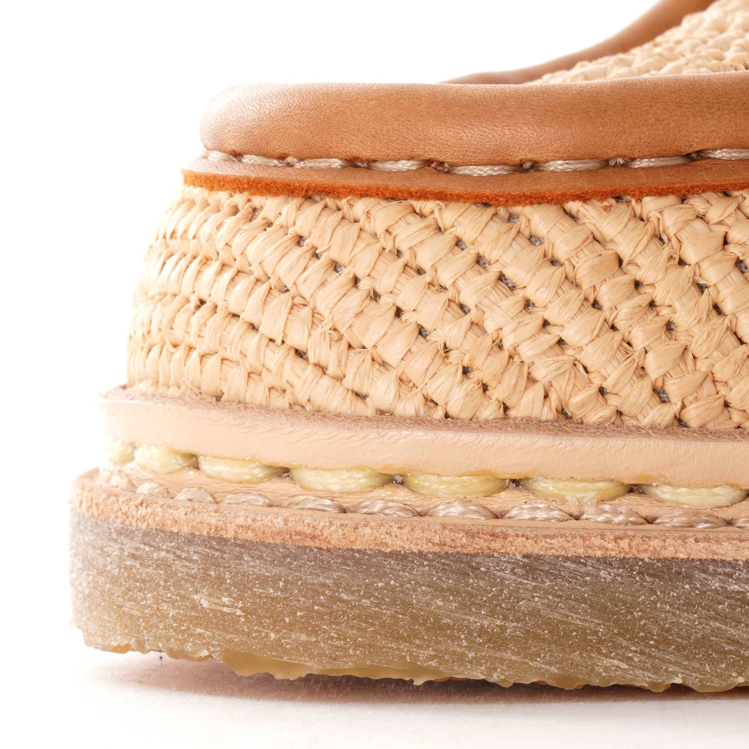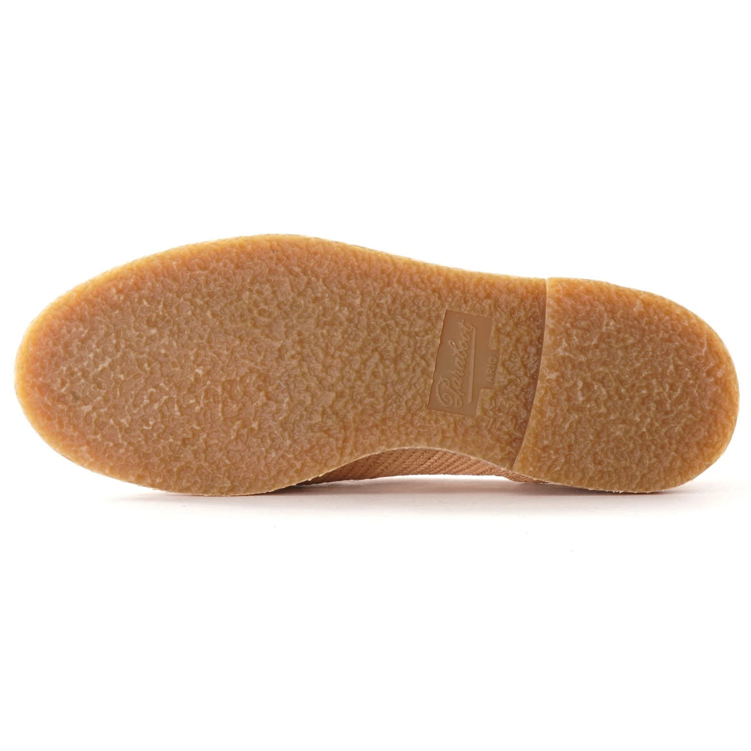 Ready for Spring/Summer Paraboot re-imagine one of their most iconic shoes. The Michael Raphia swaps out the traditional grain leather upper for a lighter weight natural yarn known as raffia, a plant of the palm family. The natural fibers are known for their strength and have been used for centuries in the making of hats, bags, furniture, and more. The material gives an instant feel of Spring/Summer with its open-weave construction and light colour. The inside of the shoes are lined with premium tan leather that can also be found on the tongue and trims of the shoe. To add to the summery feel of the shoe the normal laces have been swapped out with a more rustic rope lace in an ivory colour. The soles have also changed, with a chunky crep sole being used instead of rubber. Same solid construction as always for Paraboot with the upper sewn to the bottom of the shoe by hand giving a real solid feel to the shoe. A really stunning shoe that could add something to your Spring/Summer wardrobe this season.