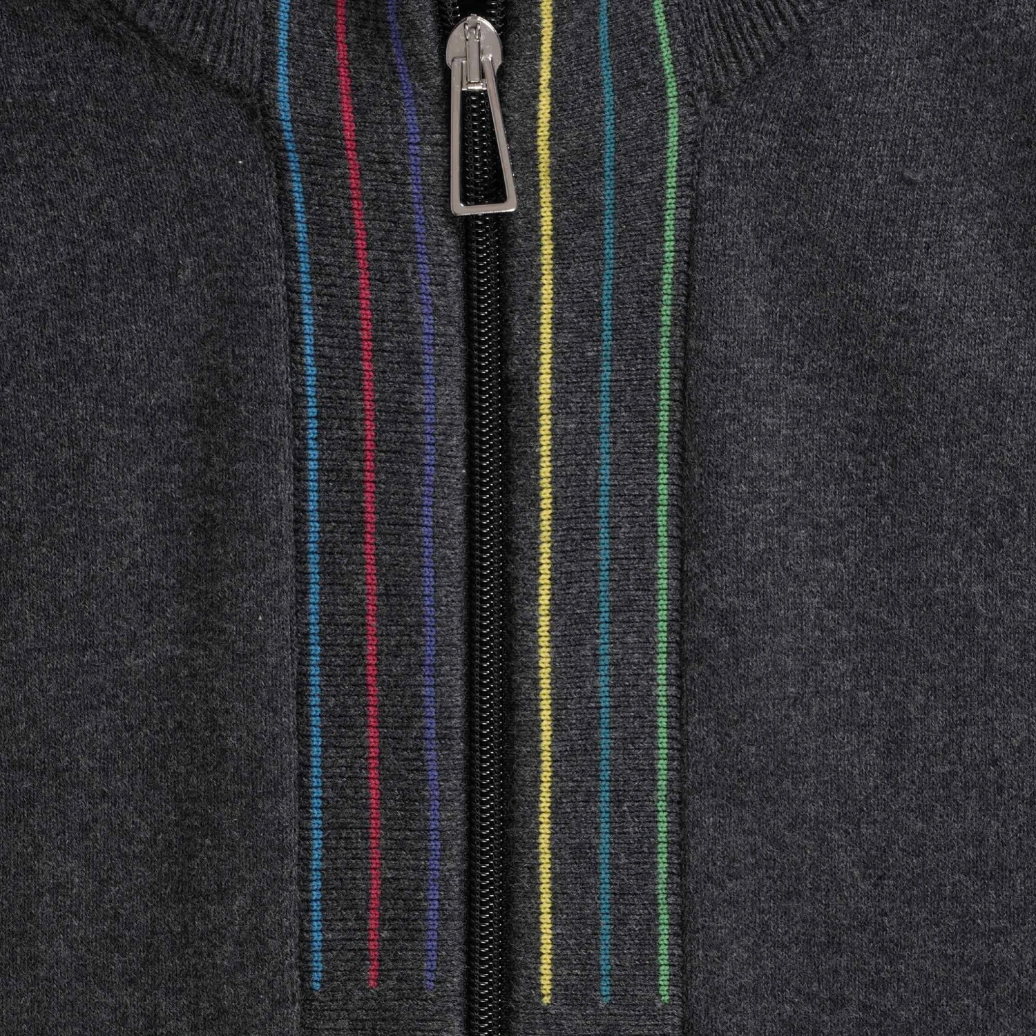 Made from a soft cotton and wool blend, this classic cardigan features the ‘Sports Stripe’ on the funnel neckline and reverse. This zip through cardigan is complete with a pennant shape zip pull and ribbed cuffs and waistband.