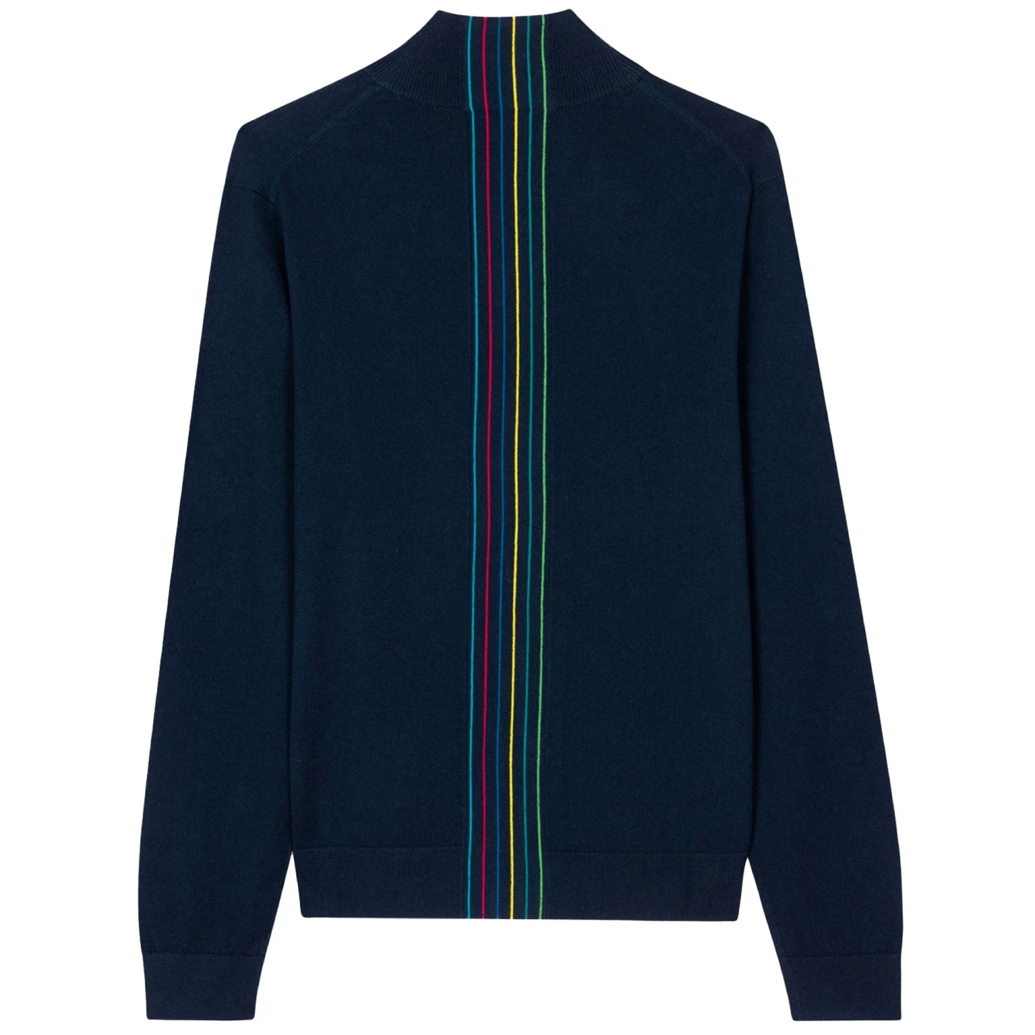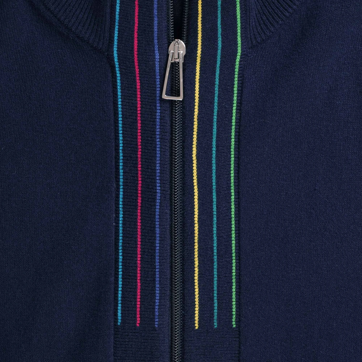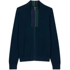 Made from a soft cotton and wool blend, this classic cardigan features the ‘Sports Stripe’ on the funnel neckline and reverse. This zip through cardigan is complete with a pennant shape zip pull and ribbed cuffs and waistband.