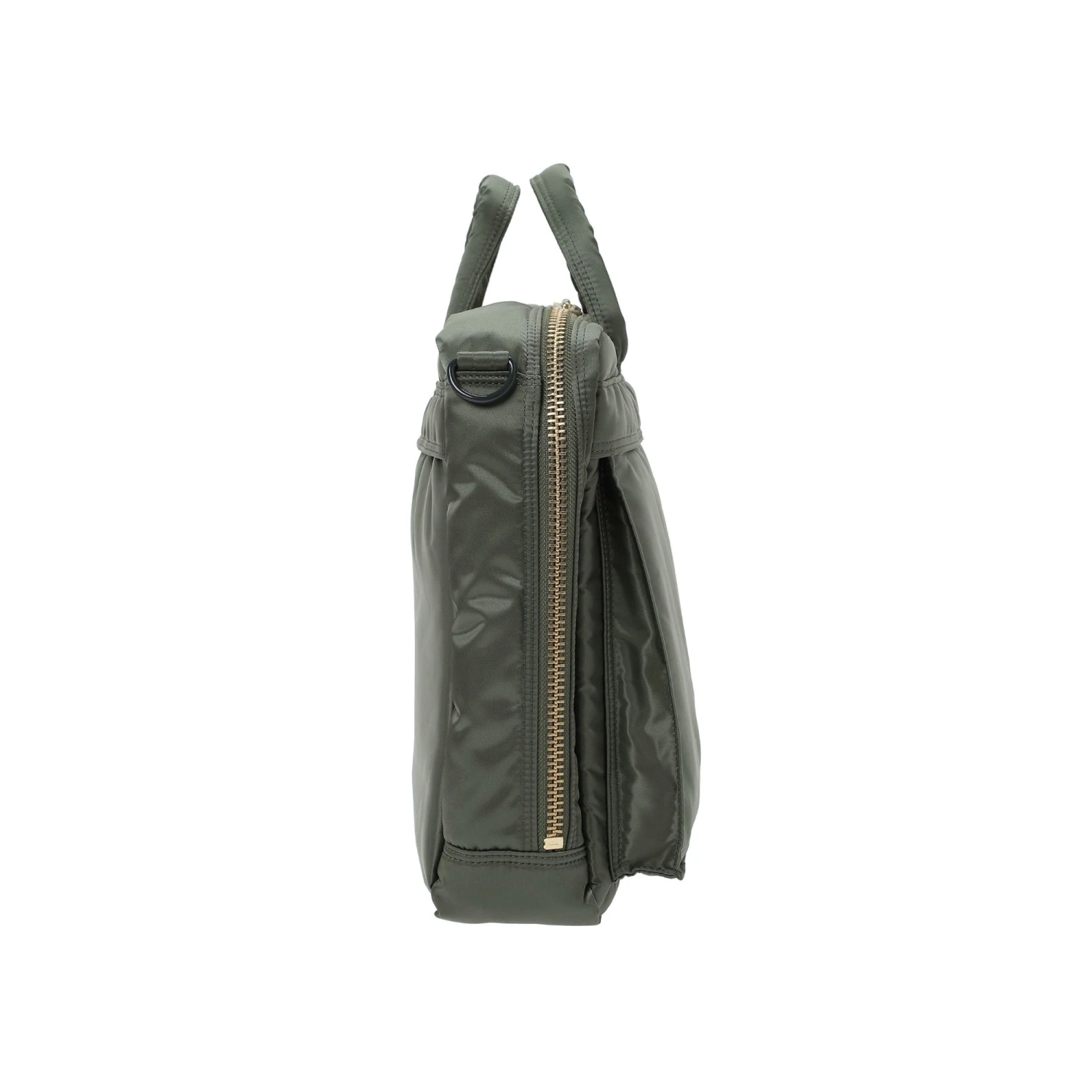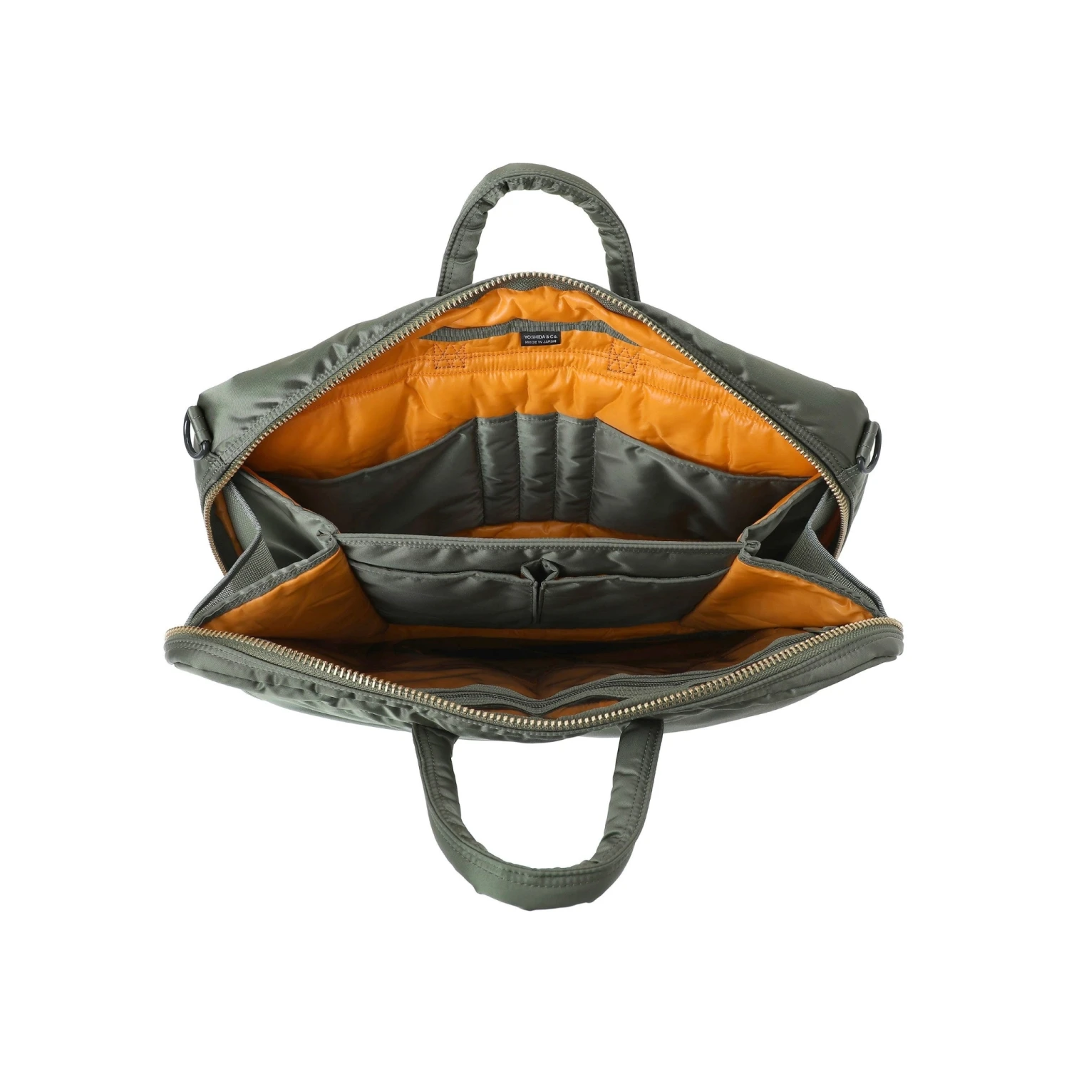 Handmade in Japan, the “TANKER” series uses an original 3-layer structure fabric developed with the motif of the US Air Force flight jacket “MA-1”. The 3-layer fabric of nylon twill (surface) + polyester cotton (middle layer) + nylon taffeta (back) is very light, and the soft feel of the bonding material and the vivid rescue orange on the back are attractive. This briefcase makes it easy to sort A4 size documents and can also store plastic bottles and folding umbrellas. The main compartment has a sasamachi specification, making it easy to put in and take out items while holding a bag. It is a functional item equipped with 3 pockets on the exterior and 6 pockets on the interior, as well as a sasamachi pocket that can store PET bottles and folding umbrellas.