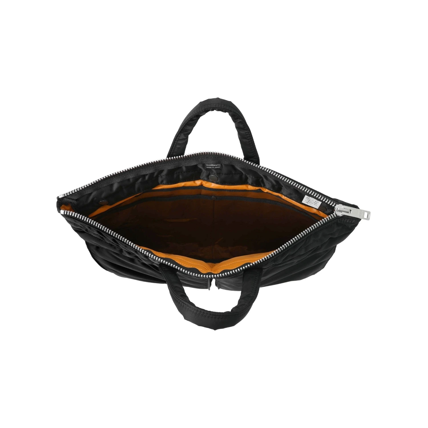 Handmade in Japan, the “TANKER” series uses an original 3-layer structure fabric developed with the motif of the US Air Force flight jacket “MA-1”. The 3-layer fabric of nylon twill (surface) + polyester cotton (middle layer) + nylon taffeta (back) is very light, and the soft feel of the bonding material and the vivid rescue orange on the back are attractive. This short helmet bag can store B4 size documents. The round handle, which has a simple design but is lightweight and easy to grip, is easy to use, making it an item that can be used in a wide range of situations, such as business. It has a thin gusset when you don’t put anything in it, but when you put something in it, the bottom gusset expands and it has more storage capacity than it looks.