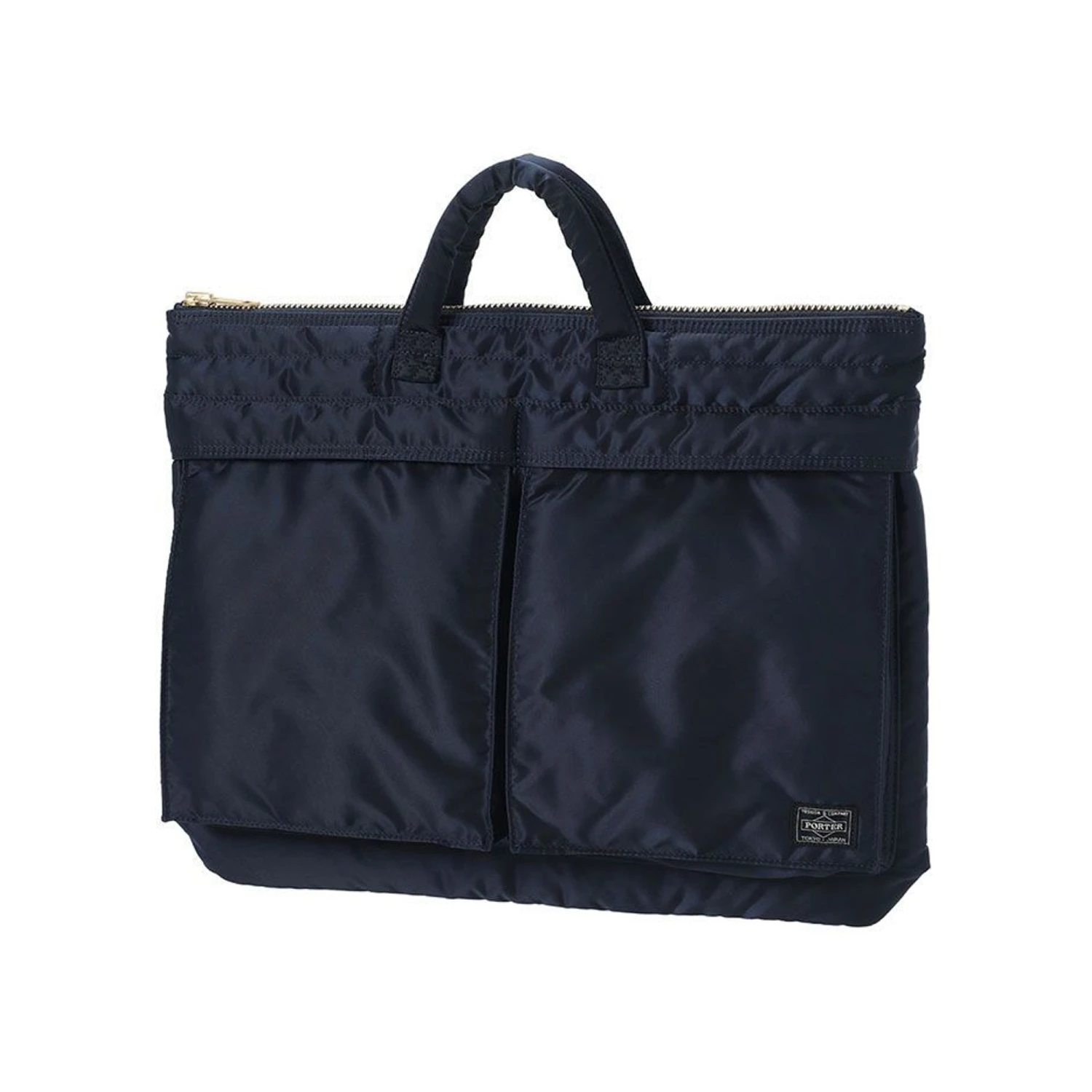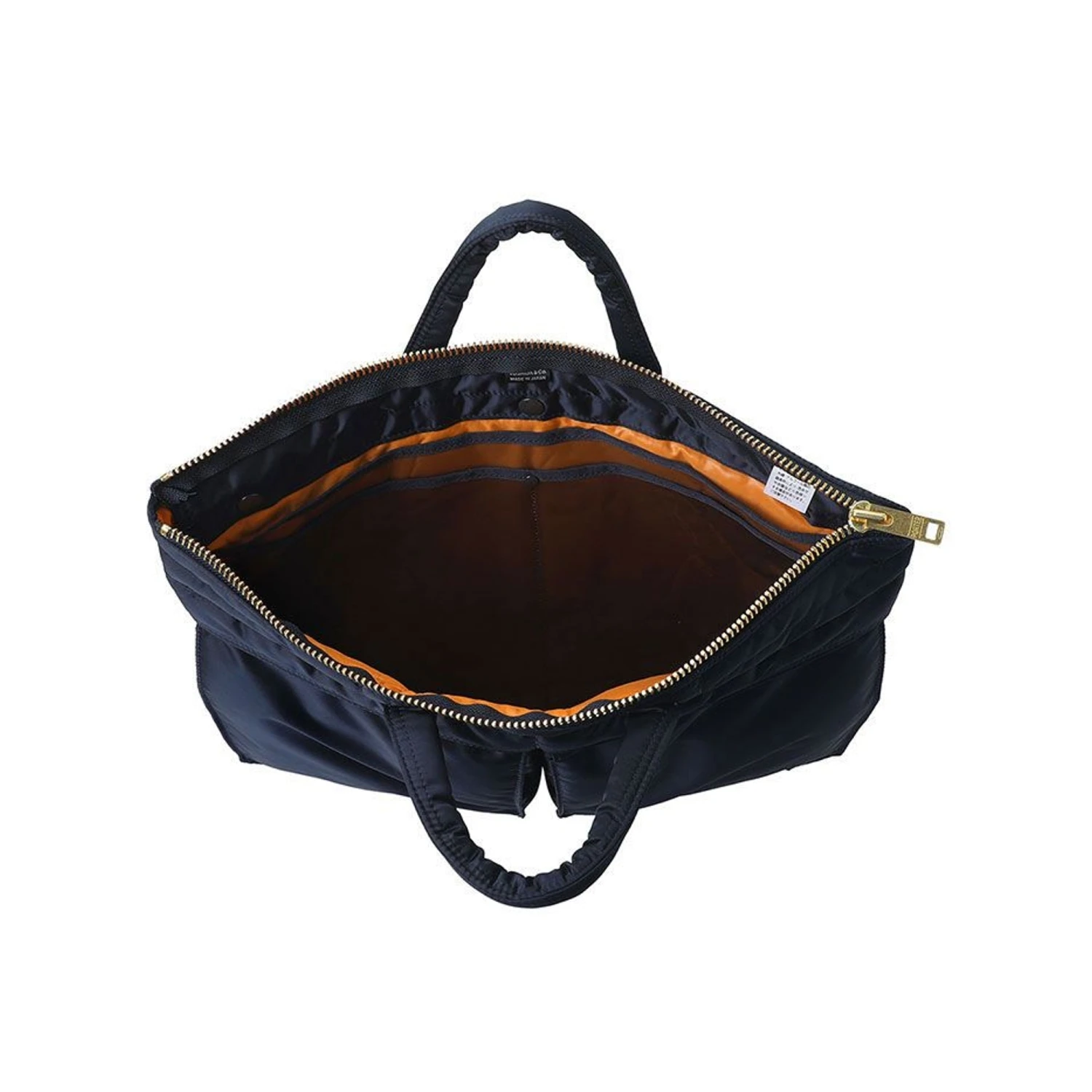 Handmade in Japan, the “TANKER” series uses an original 3-layer structure fabric developed with the motif of the US Air Force flight jacket “MA-1”. The 3-layer fabric of nylon twill (surface) + polyester cotton (middle layer) + nylon taffeta (back) is very light, and the soft feel of the bonding material and the vivid rescue orange on the back are attractive. This short helmet bag can store B4 size documents. The round handle, which has a simple design but is lightweight and easy to grip, is easy to use, making it an item that can be used in a wide range of situations, such as business. It has a thin gusset when you don’t put anything in it, but when you put something in it, the bottom gusset expands and it has more storage capacity than it looks.
