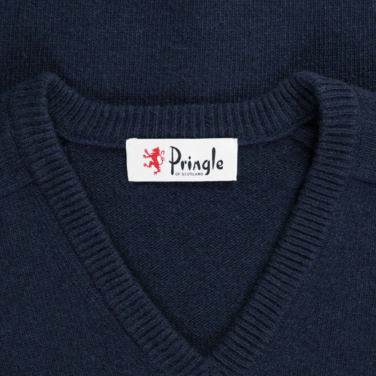 Made in Portugal, this regular fit V neck Jumper crafted from an Italian lambswool blend & features Pringle’s signature Lion logo on the chest, finished with long sleeves, ribbed neck & ribbed cuffs.