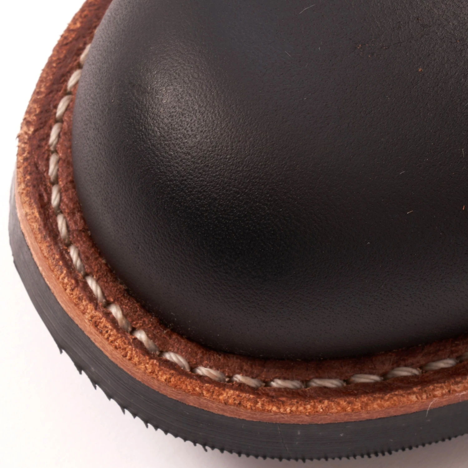 A high quality boot inspired from the Red Wing archives the 6″ Blacksmith Boot inherits it’s name from being the shoe of chouce for Blacksmiths as it’s height would have protected their feet from hot cinders at the forge. Featured in a premium Black Prairie leather the silhouette sits upon the a lightweight Vibram® 430 Mini-lug outsole. Also featuring a 3/4 Goodyear welt construction for durability the Blacksmith boot is detailed with tonal contrast throughout whilst Gilt Hooks and Eyelets and a reinforced toe cap which add function. Great for everyday or work wear try combing these boots with a pair of selvedge denim from the likes of Levi’s Vintage for an authentic finish that will resonate over the coarse of the coming months.