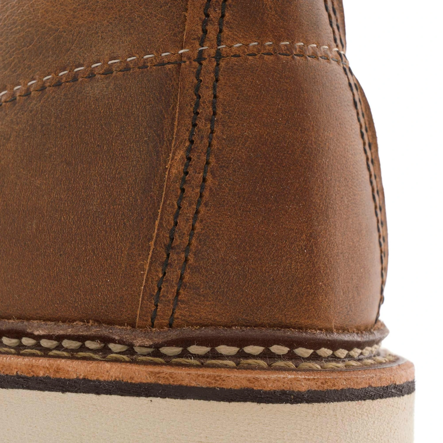 The 1907 6-inch Classic Moc is synonymous with Red Wing Heritage. The boot’s unmistakable moc toe and Traction Tred outsole form a timeless silhouette, and a storm welt adds additional water resistance. The Classic Moc was first made by Red Wing in 1952. In the decades since, it’s grown into one of the most beloved lifestyle boots in the world. The Classic Moc’s beloved features live on today, as the boot is still built with the same pride and process now as it was then. Moc toe construction and the iconic Traction Tred rubber outsole lead the way, and Puritan triple stitching and a storm welt for additional water resistance.