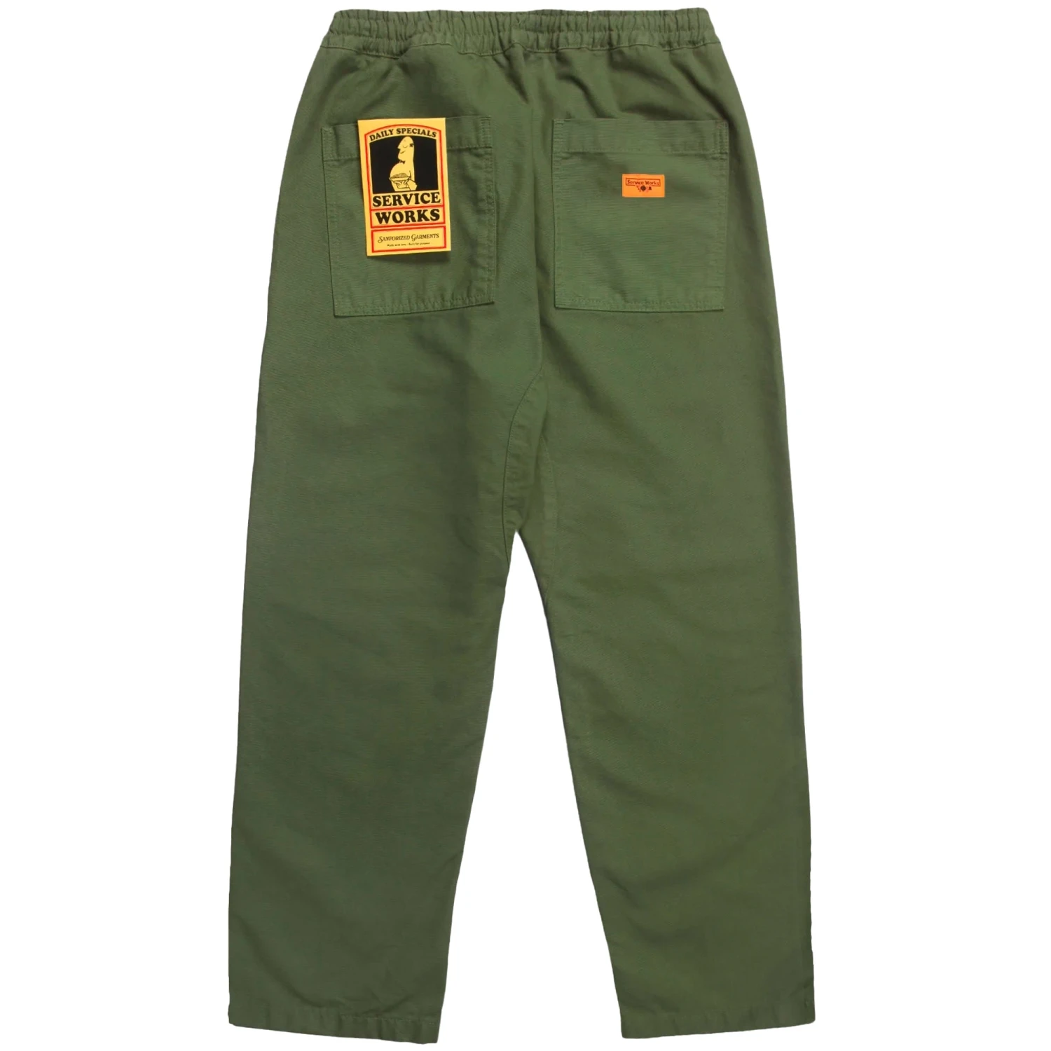 The Chef Pants from Service Works have been constructed with 310GSM, BCI approved cotton canvas. They feature an adjustable waistband with internal drawstring, fatigue front pockets & rear pockets with embroidered label. Relaxed fit.