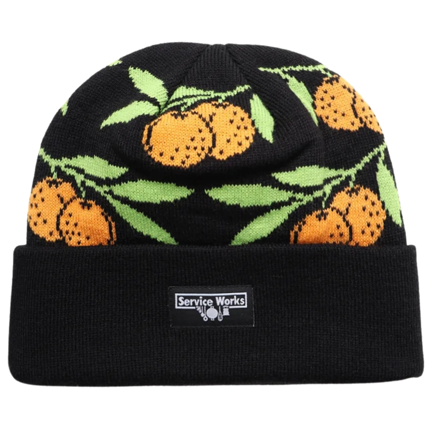 Service Works have designed this classic beanie with an all over Clementine knitted design, a folded hem and is complete with Service Works branding.