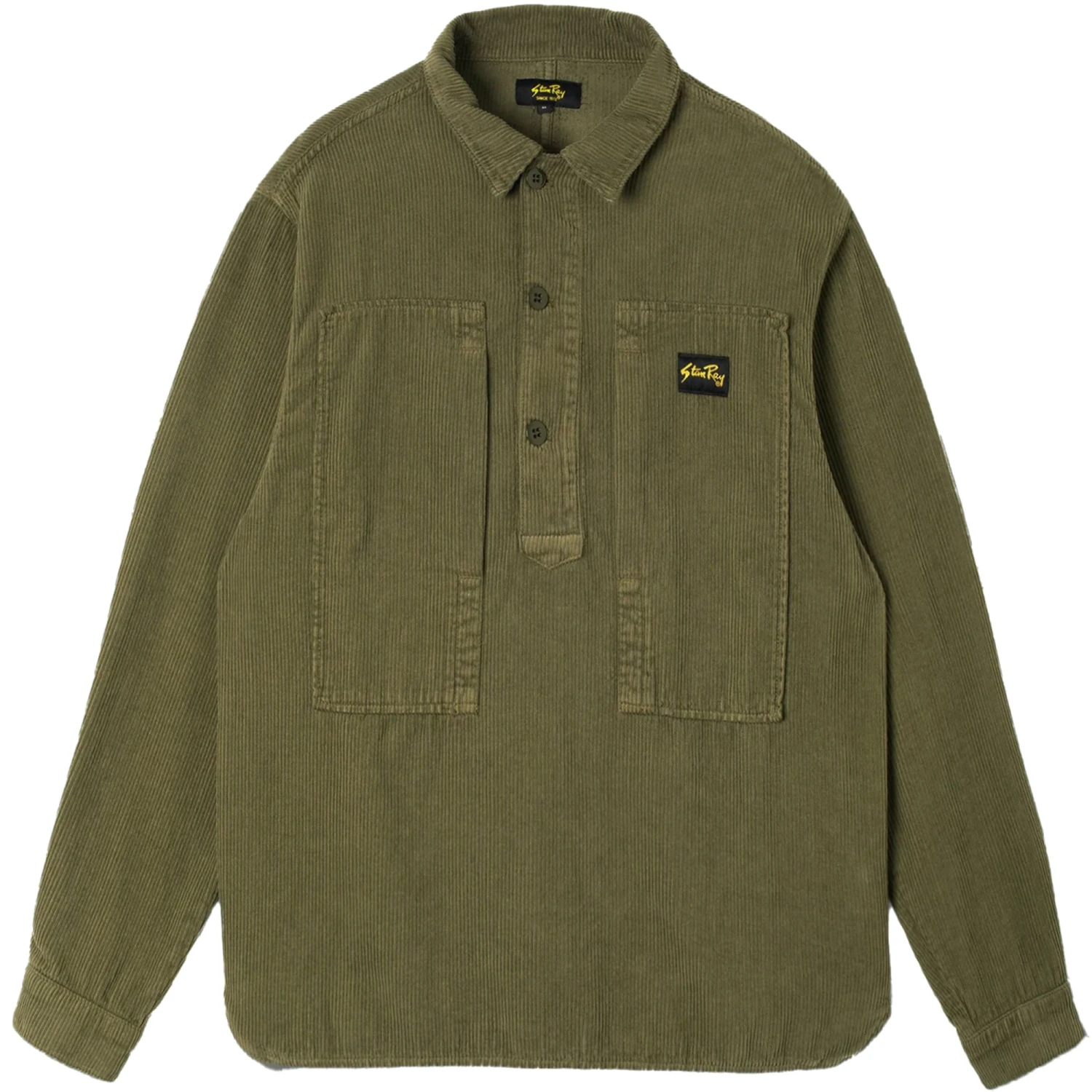 A loose fitting collared pop-over shirt with huge side-entry patch pockets on the front, complete with woven Stan Ray patch. The loose fit and scalloped side seam make it easy to pop on and off.