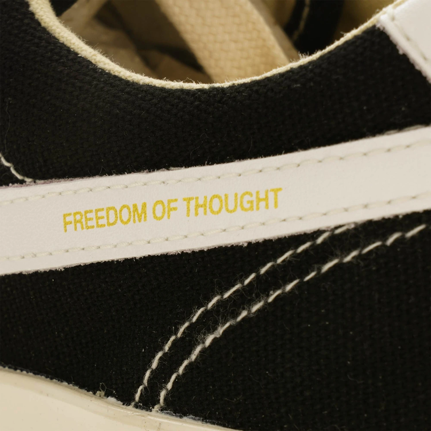 The ‘S-STRIKE’ features a trailing ‘S’ identifier panel on the quarters and heel spoiler in contrast colour leather. Both have neat gold-foil branding and small brand messages ‘FREEDOM OF SPORT’ (right shoe) and ‘FREEDOM OF THOUGHT’ (left shoe). Uppers are made from their new harder-wearing 12.Oz cotton canvas and the sidewall foxings have a new printed ‘S-STRIKE’ rubber heel patch.