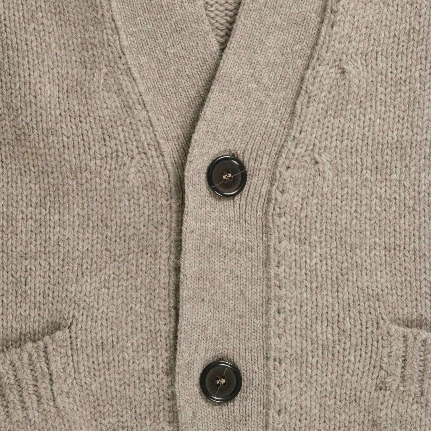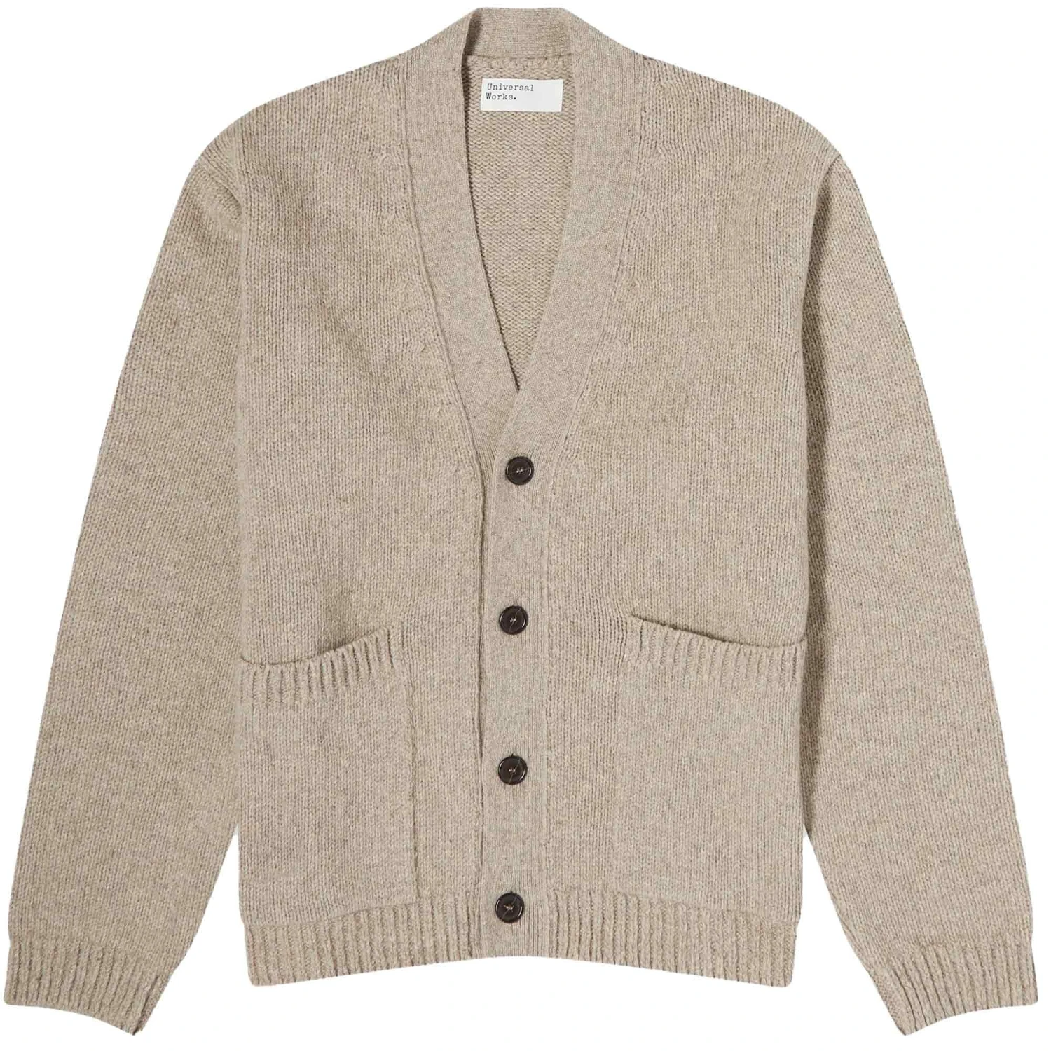 The oatmeal colour of the Universal Works Langdale Cardigan has a soft, cosy feel, and its timeless style guarantees that it will be a cherished staple for many years. The Langdale Cardigan is simple and stylish, with a regular fit that ensures maximum comfort and ease of wear. This button-front cardigan has a classic style with ribbed cuffs and hem as well as contrast detailing and is made of 81% wool, 15% polyamide, and 4% other fibres.