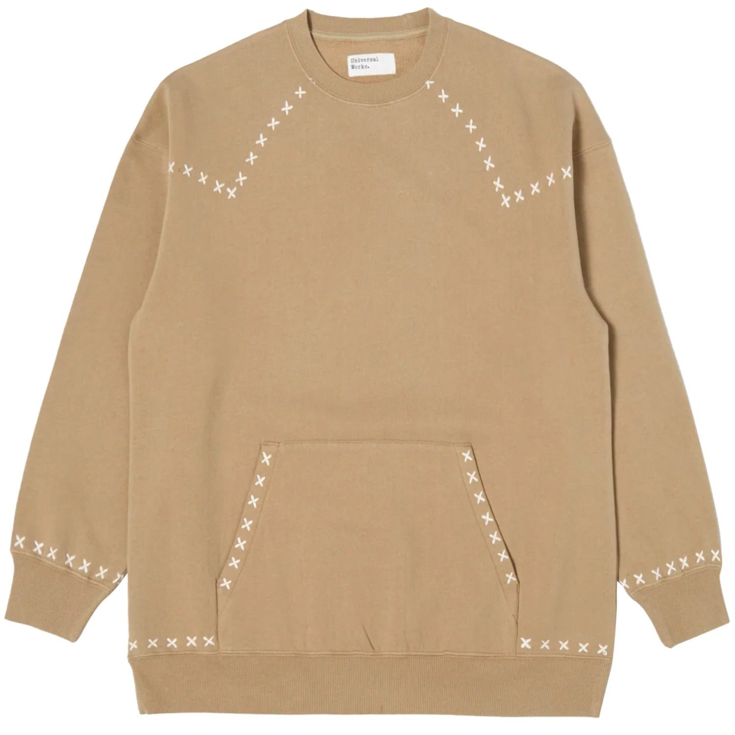 A loose-fitting crew neck with a classic ribbed collar, cuffs, and hem. Large kangaroo pocket. 100% cotton, 360g fleece knit fabric with a brushed back. For a super soft, winter-ready feel.