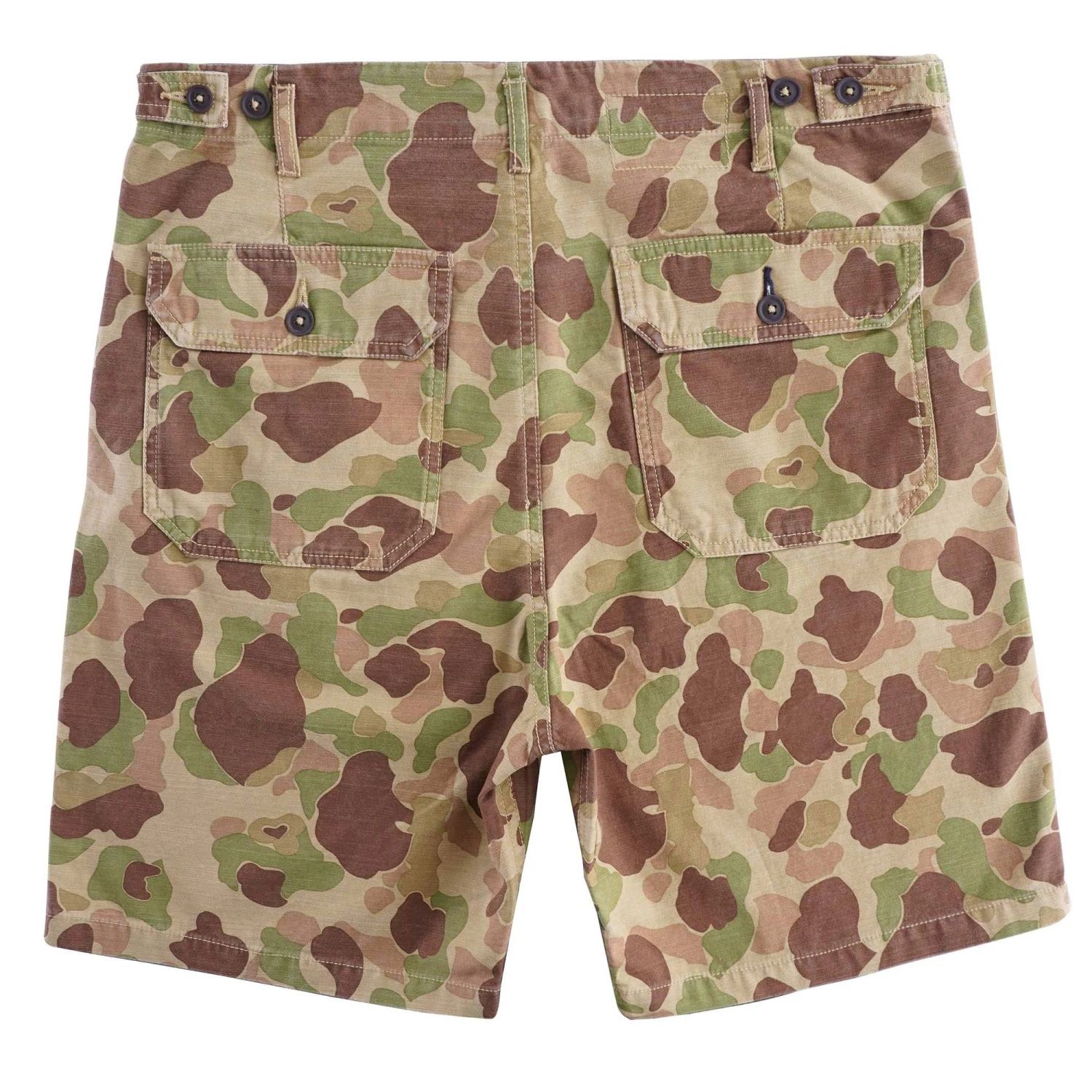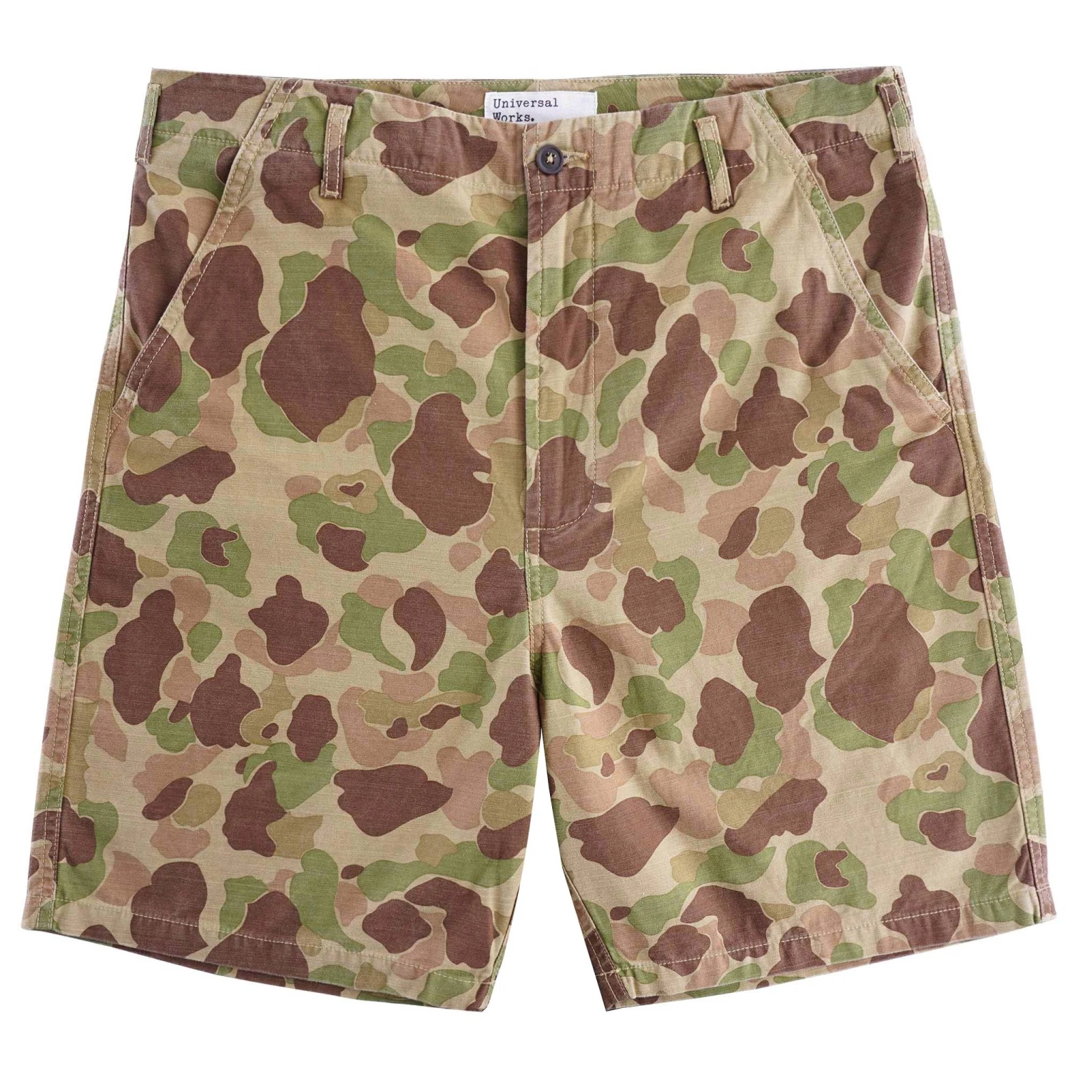 Loose, relaxed short with a knee-length fit. This particular fabric is sourced from one of brand’s favourite cotton mills, based in Osaka, Japan. It has a soft, slubbed finish, and is based on an old US military design. The shorts are cut to fall just above the knee and feature two front pockets and two military-style rear pockets. A premium take on your favourite camo shorts.